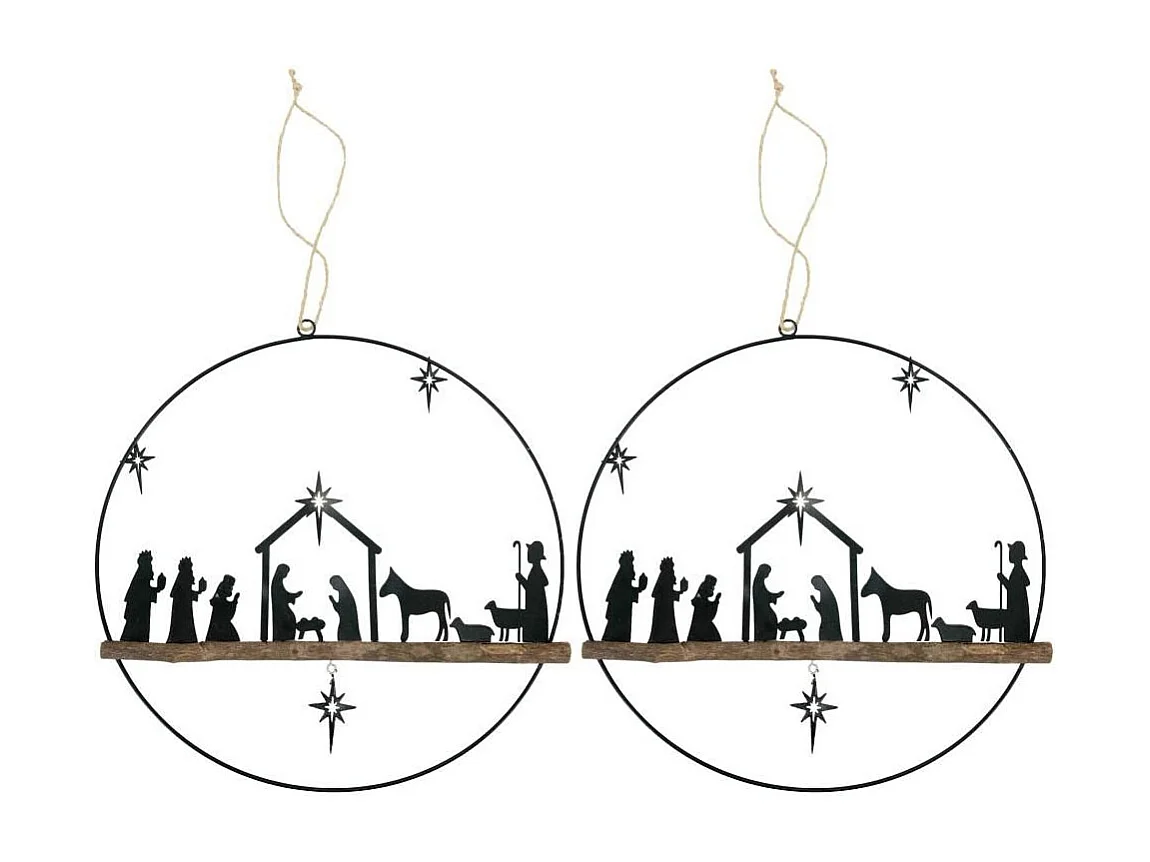 Décoration murale métal et bois Crèche de noel Lot de 2
