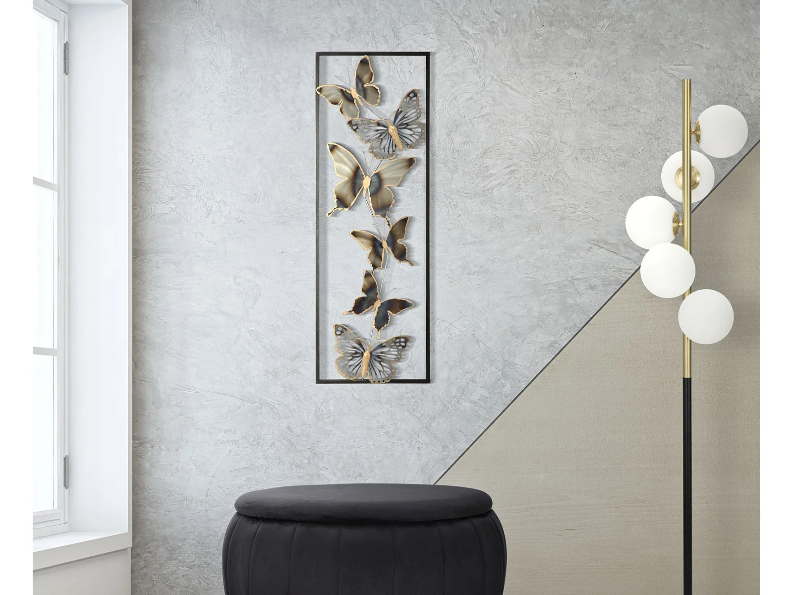 Déco Murale Encadrée en Métal "Papillons" 90cm Argent