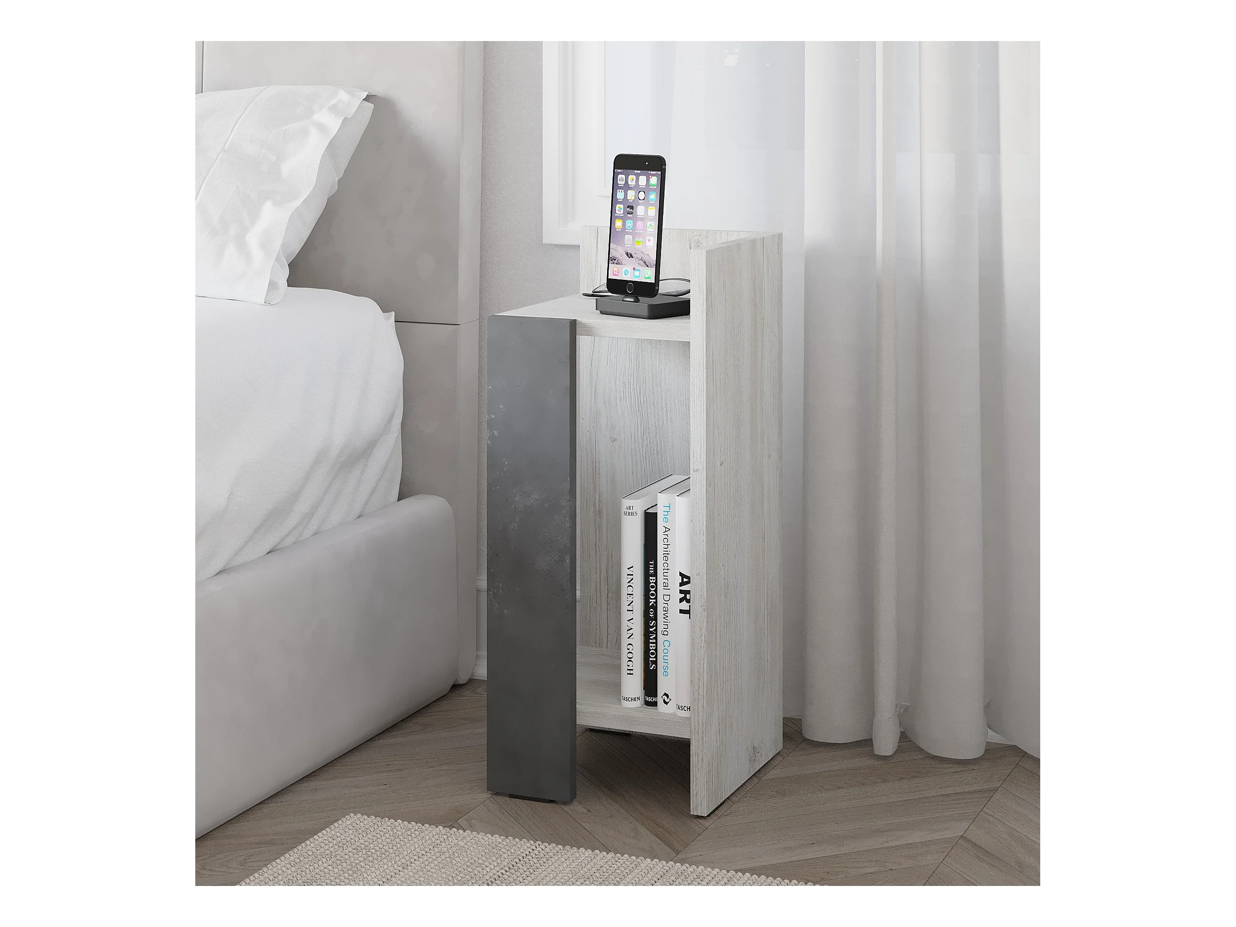 Decortie Elos Table de chevet étroite moderne Module droit Ancien Blanc Rétro Gris 25x25x60cm