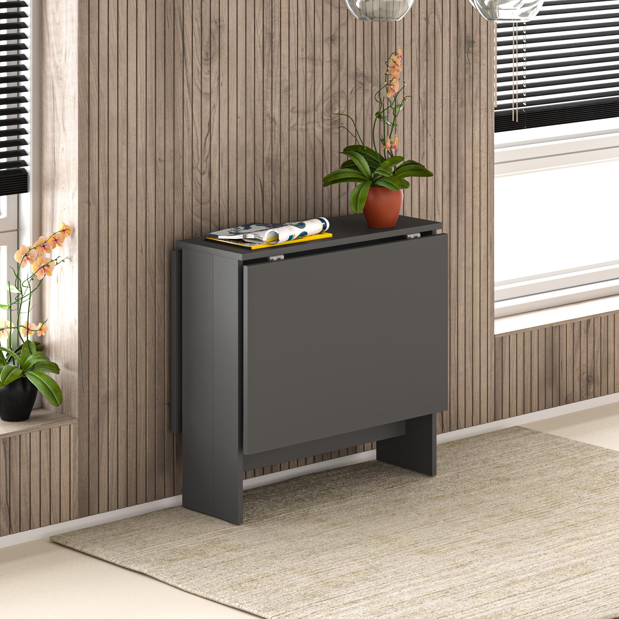 Decortie Gris Anthracite 76x130x73.4cm Table à manger pliante pour 4 personnes, panneau de particules, rectangulaire, Artemio