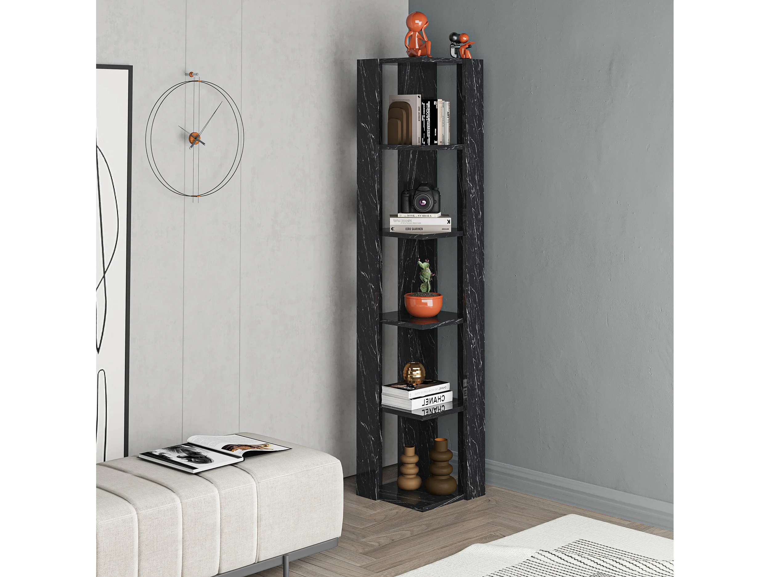 Decortie Nati Tall Corner Bookcase Modern Shelving Unit Space-Saving Storage Black Marble Effect 161cm