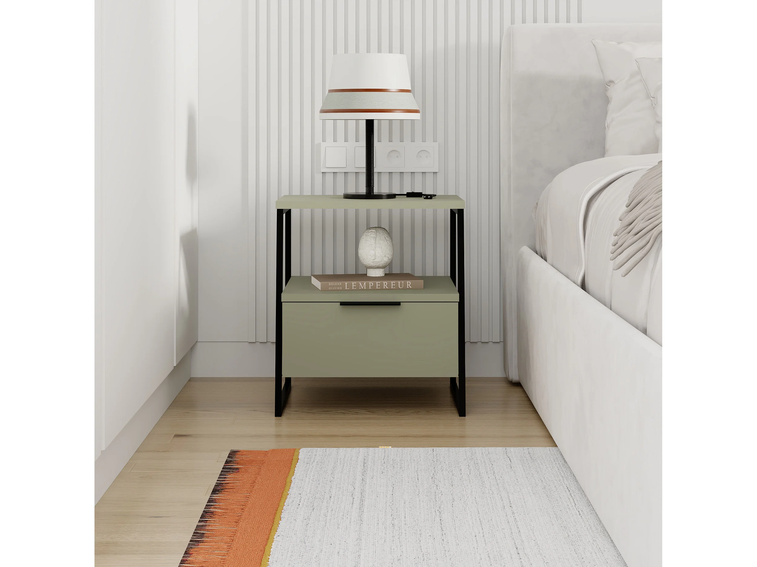 Decortie Pal Table de chevet moderne avec tiroir Vert cendré Largeur 45cm Mobilier de chambre à coucher