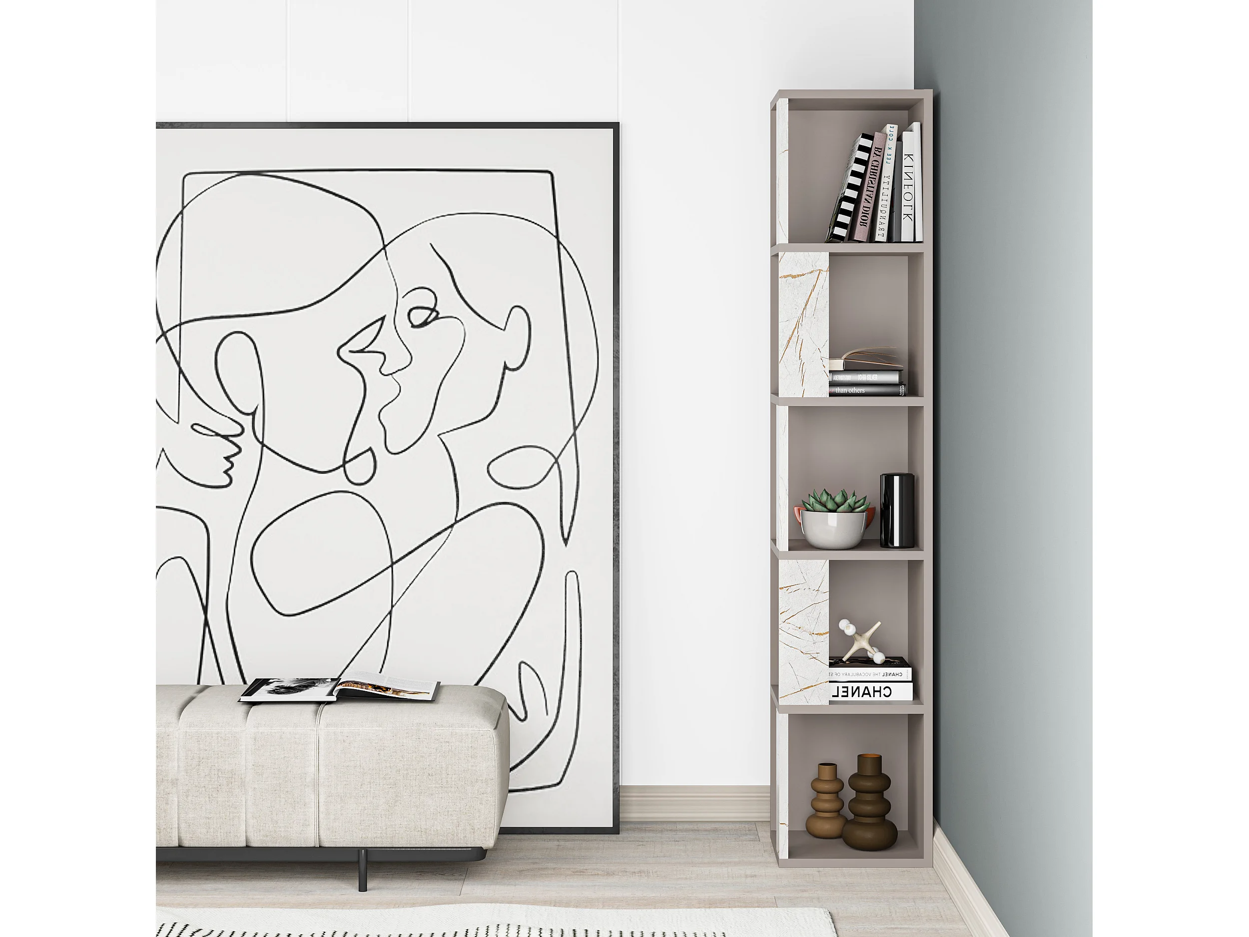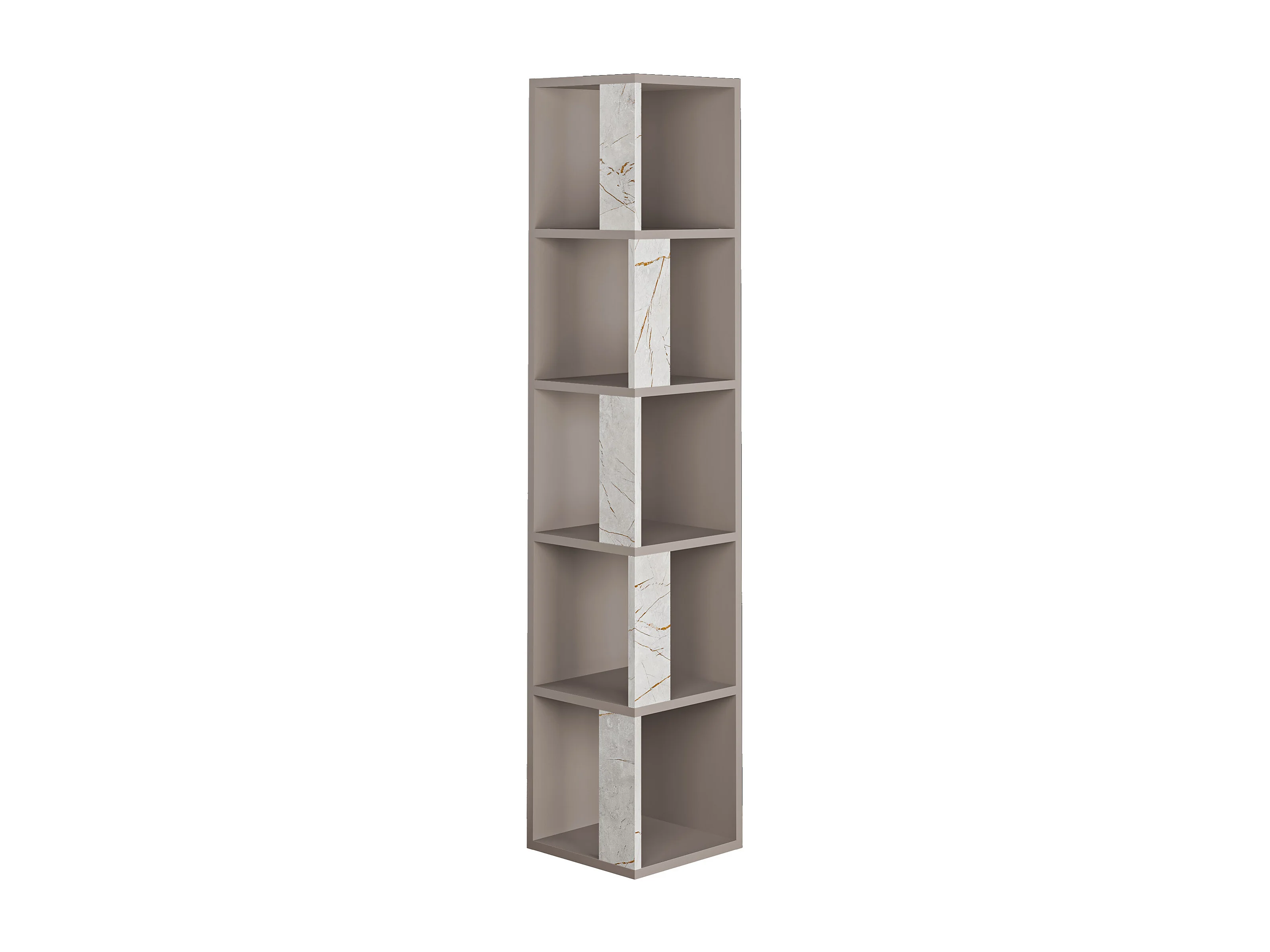 Decortie Piano Modern Corner Bookcase Display Unit Mocha Grey, Gold Marble Effect Tall 158.9cm