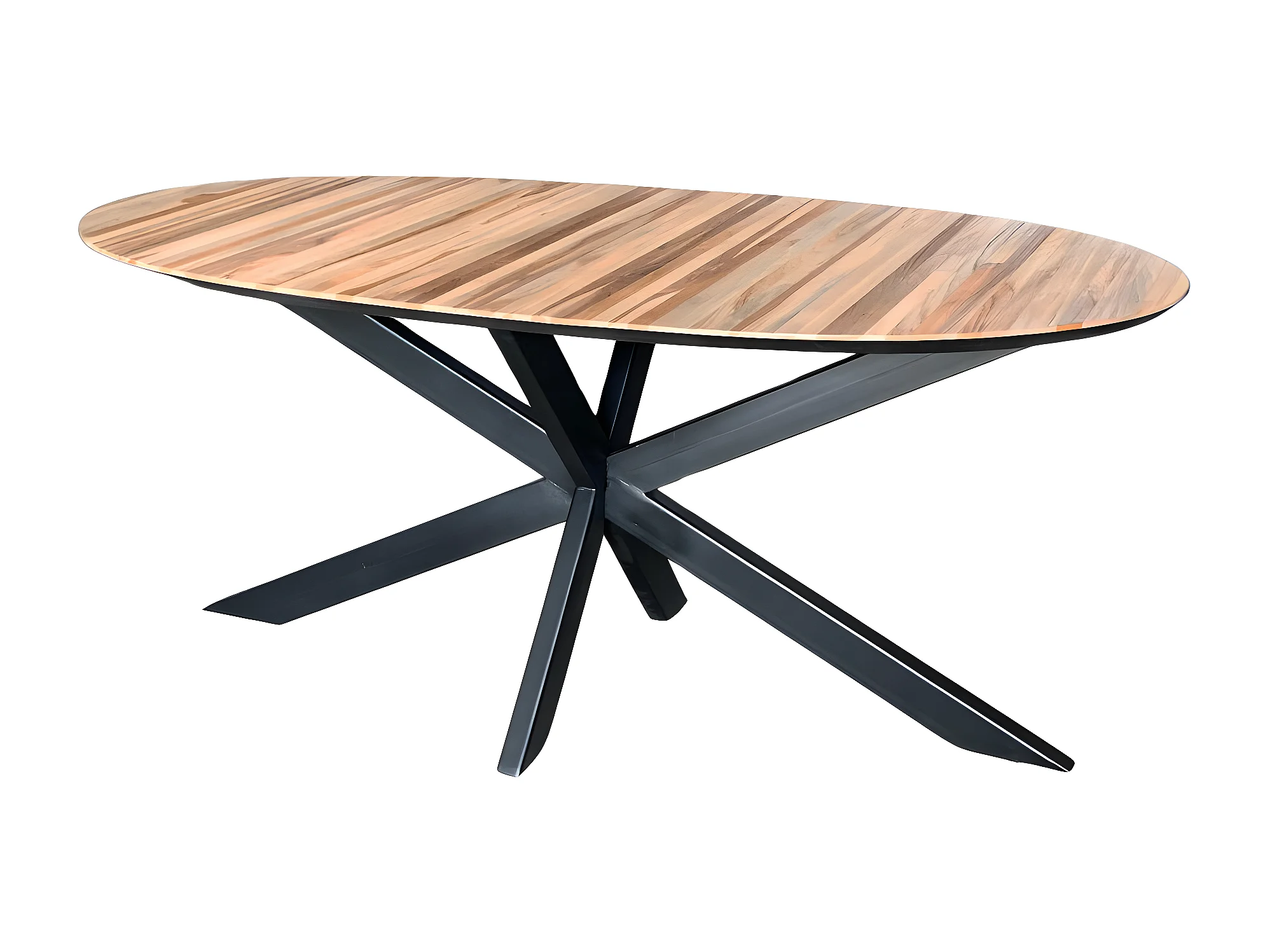 Dehli - Table à manger 6 personnes ovale en bois et métal - Bois clair