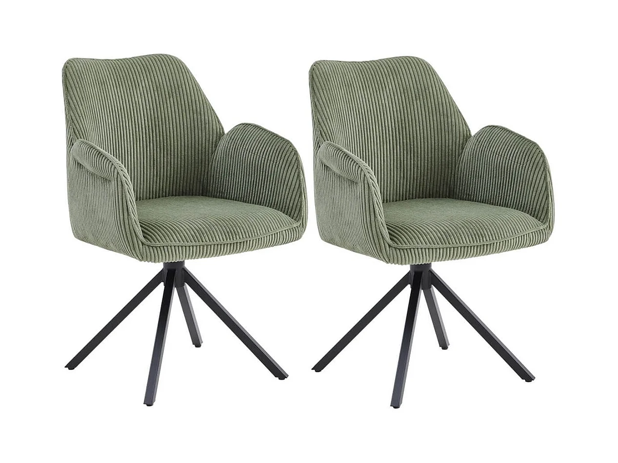 DELIA - Lot de 2 Fauteuils de table Pivotants Tissu Velours Côtelé Vert