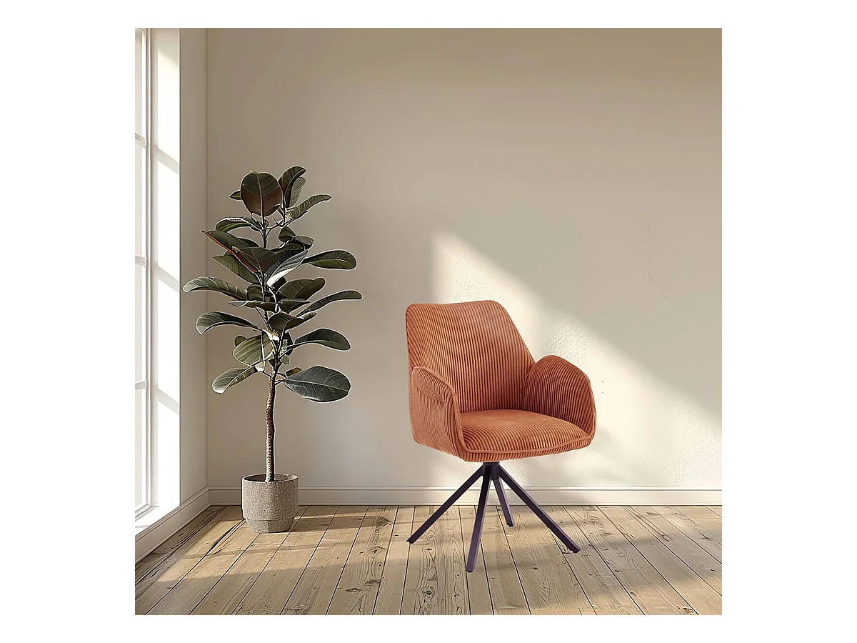 DELIA - Lot de 4 Fauteuils de table Pivotants Tissu Velours Côtelé Terracotta