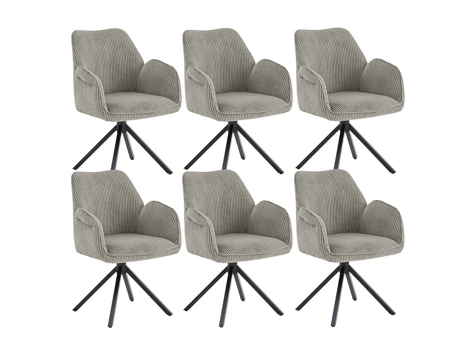 DELIA - Lot de 6 Fauteuils de table Pivotants Tissu Velours Côtelé Beige