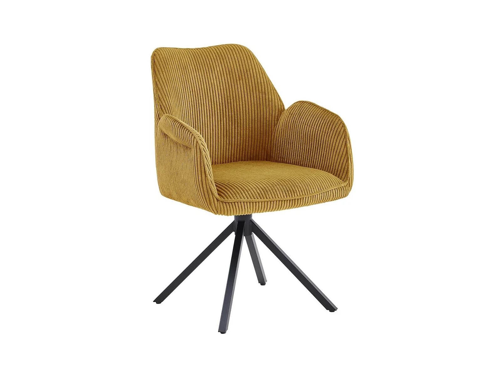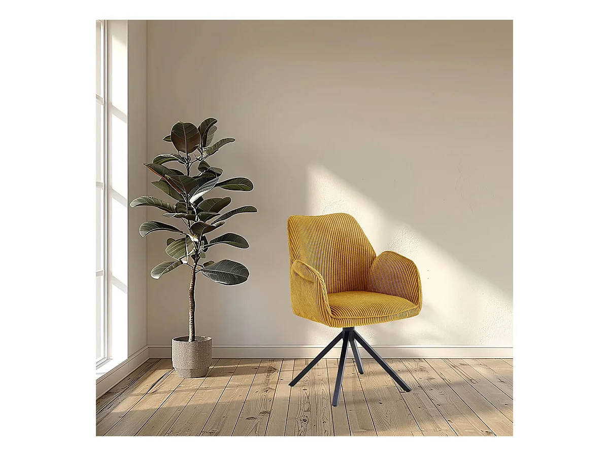 DELIA - Lot de 6 Fauteuils de table Pivotants Tissu Velours Côtelé Jaune