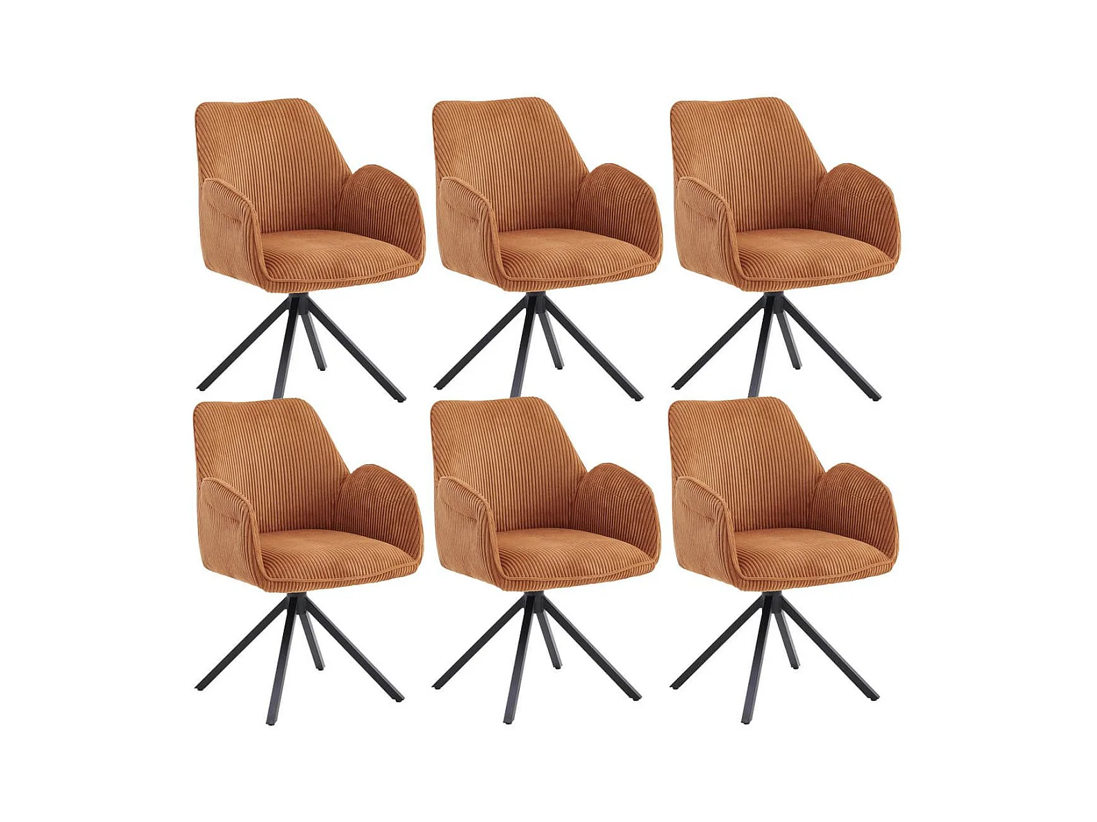 DELIA - Lot de 6 Fauteuils de table Pivotants Tissu Velours Côtelé Terracotta