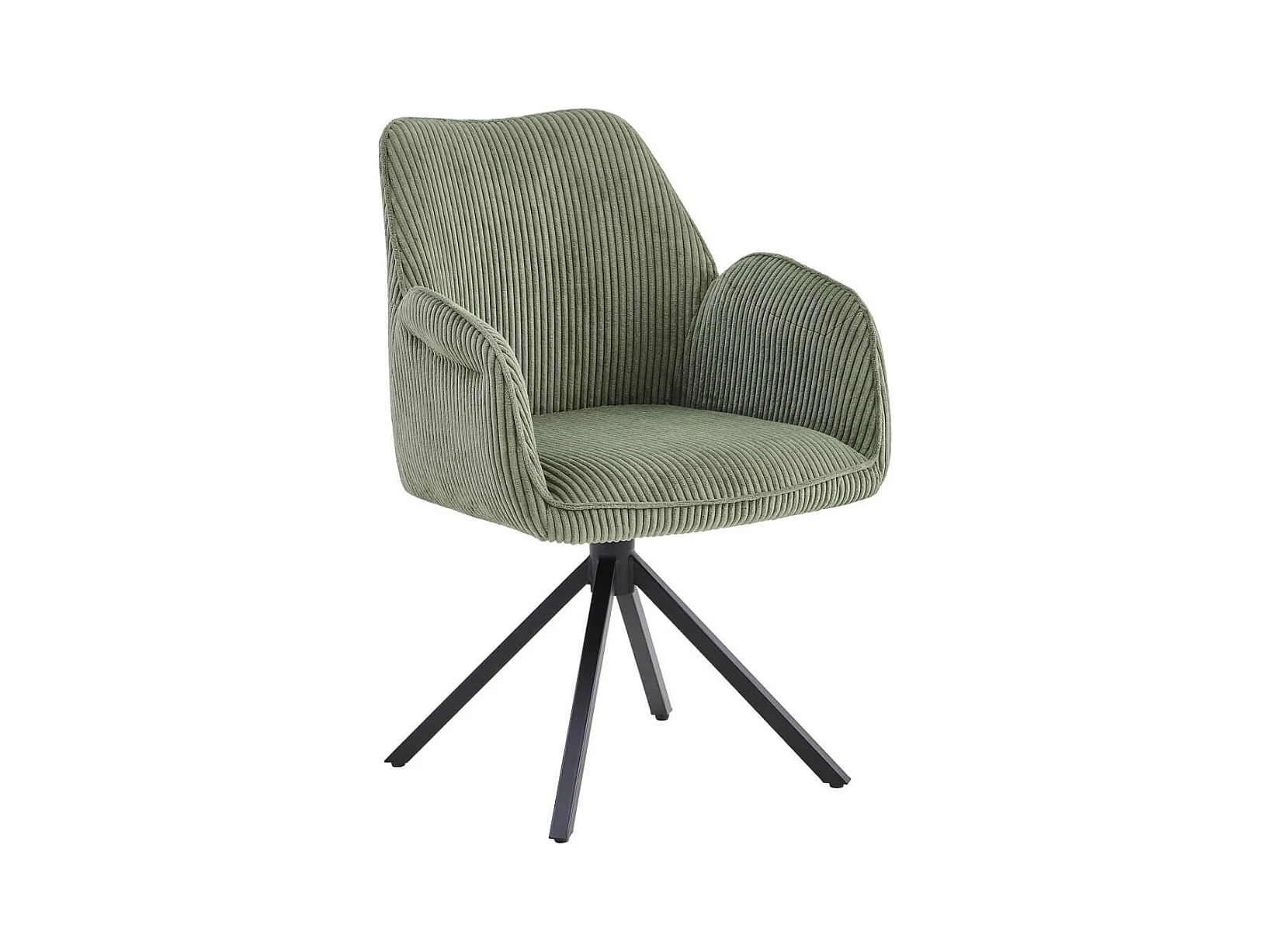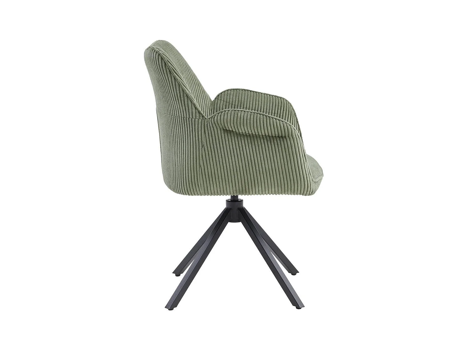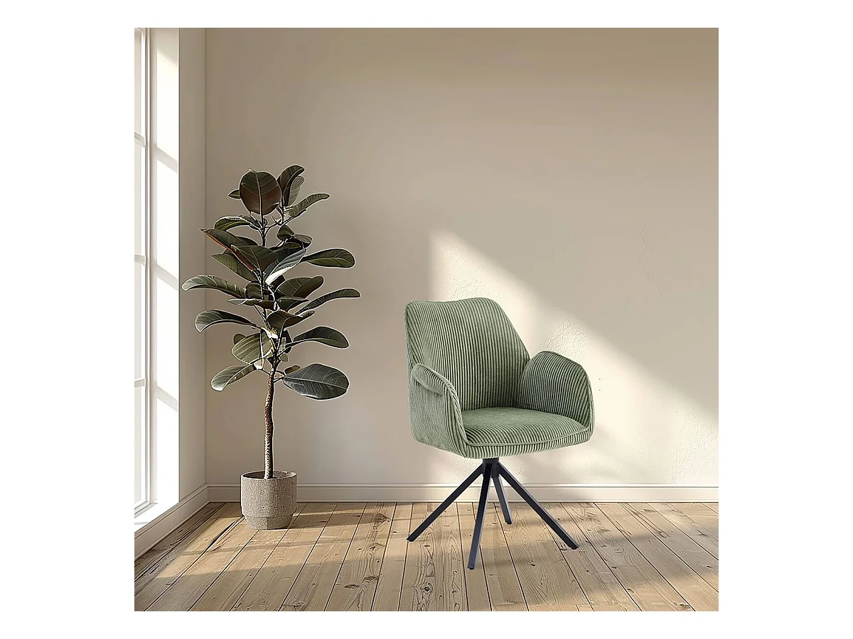DELIA - Lot de 6 Fauteuils de table Pivotants Tissu Velours Côtelé Vert