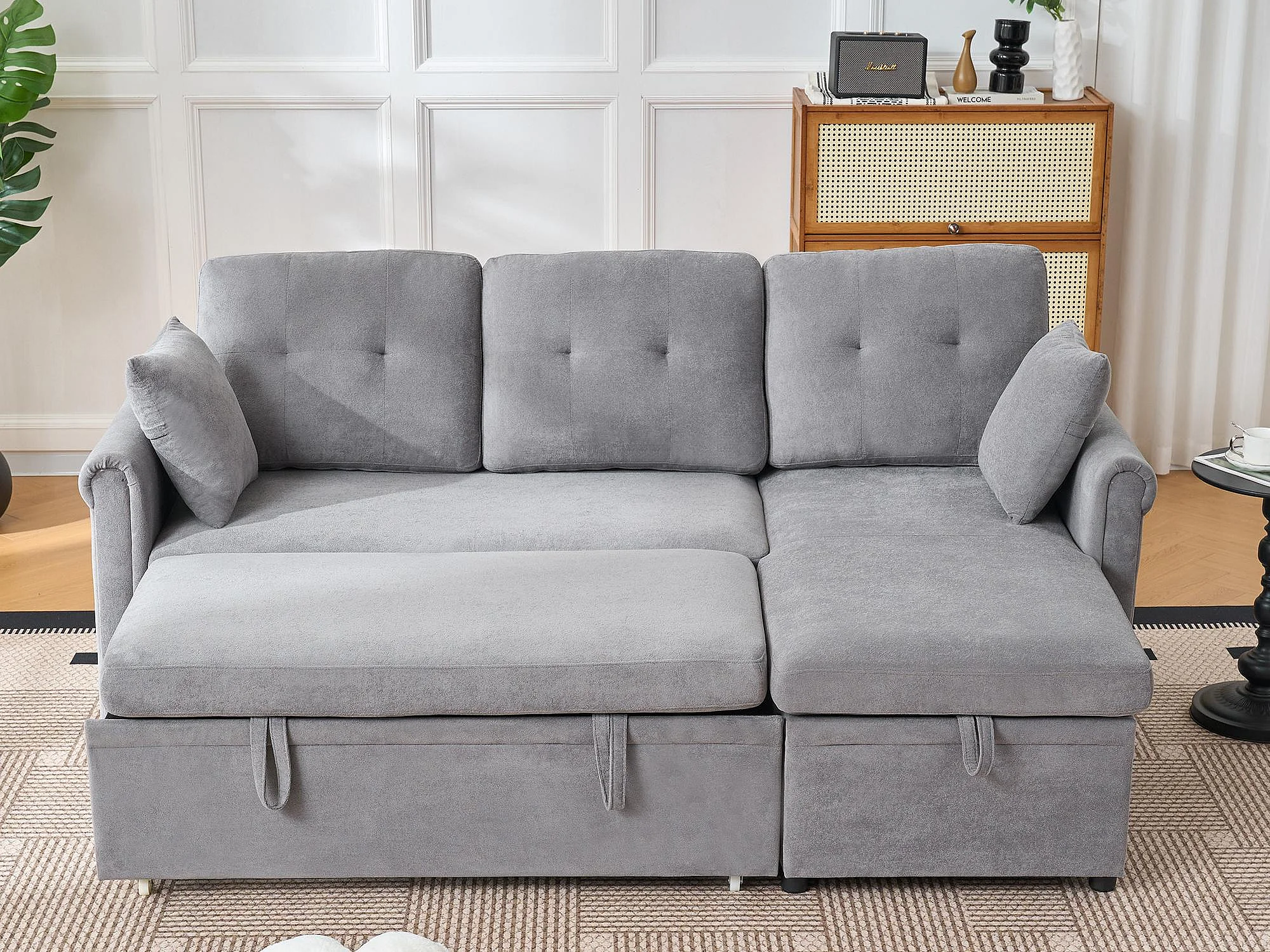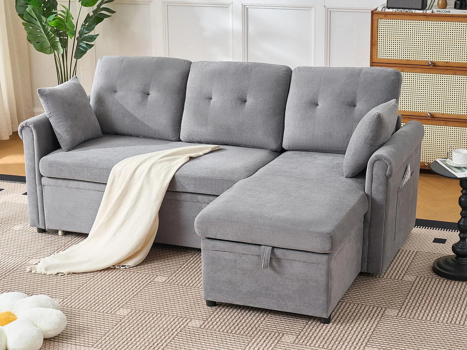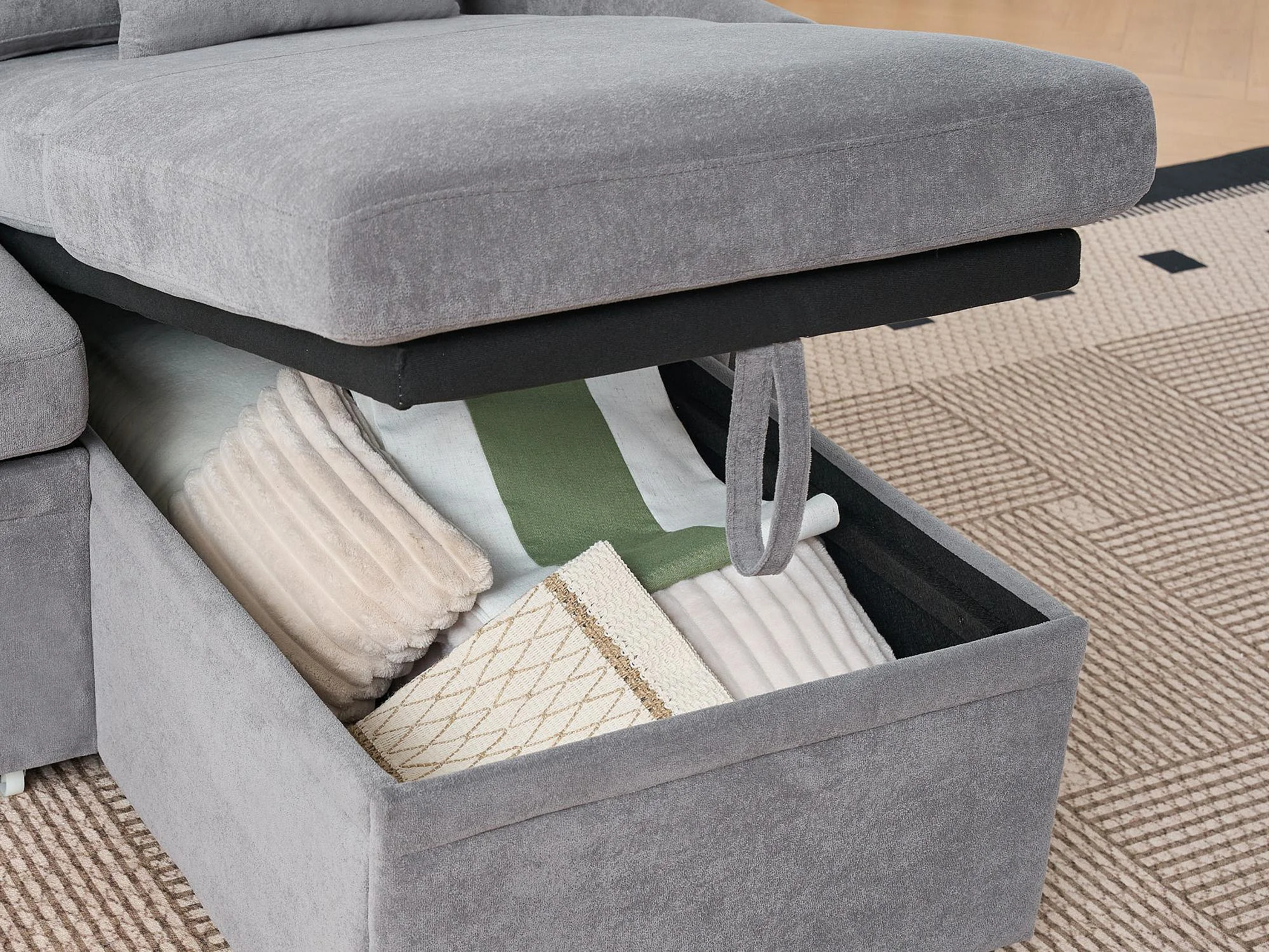 Délice - Canapé d‘Angle Convertible 3 Places - Chenille avec Coffre de Rangement et Roulettes - Idéal Studio & Appartement