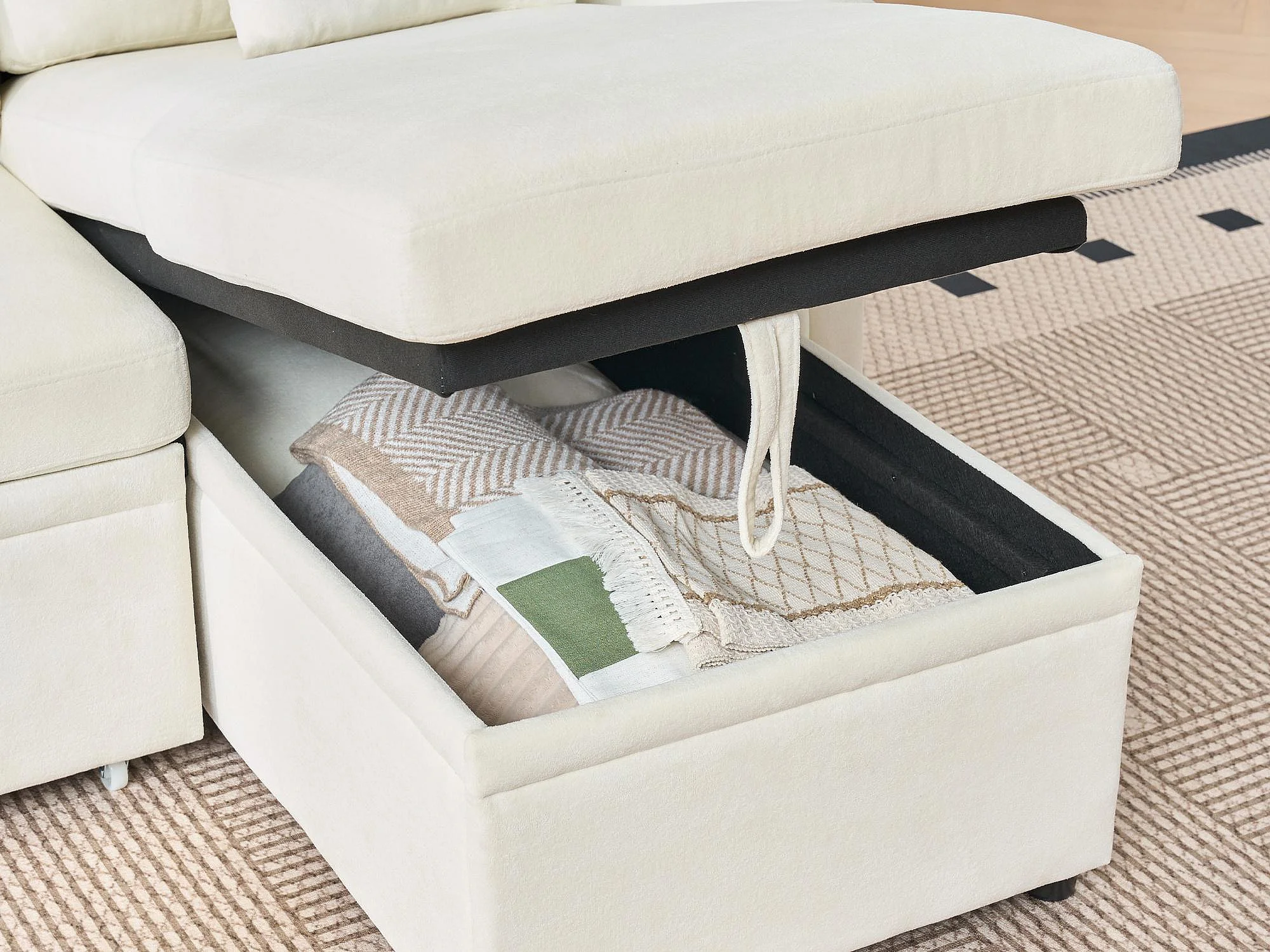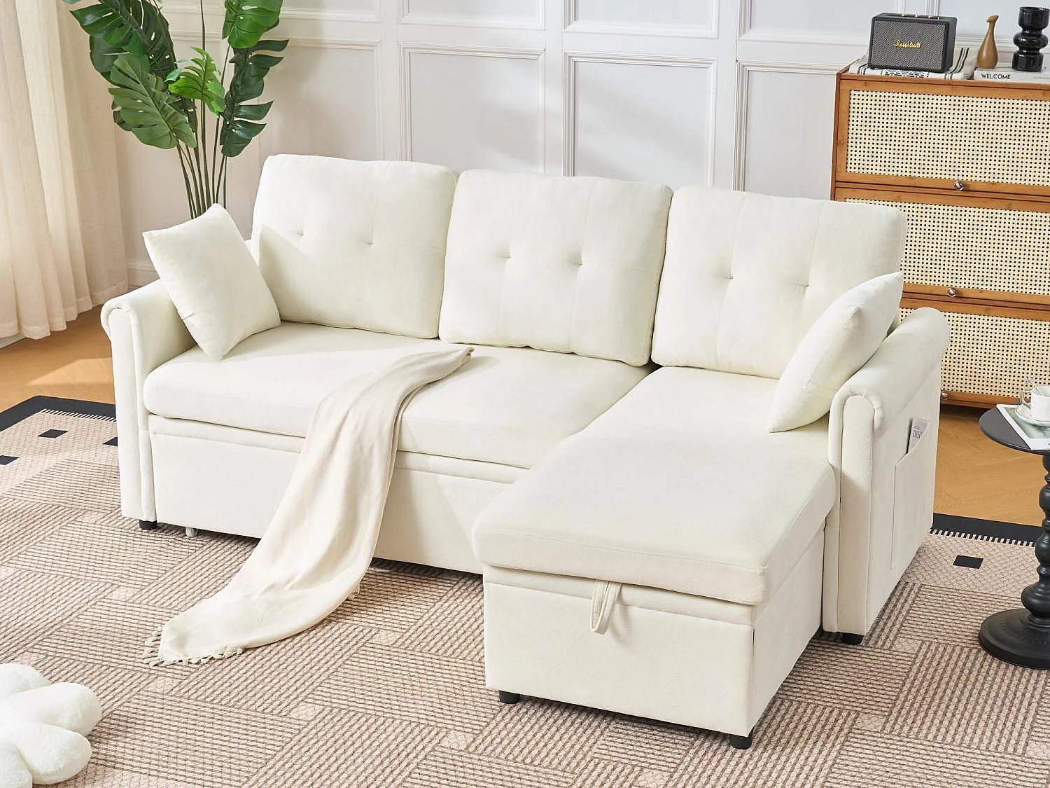 Délice - Canapé d‘Angle Convertible 3 Places - Chenille avec Coffre de Rangement et Roulettes - Idéal Studio & Appartement