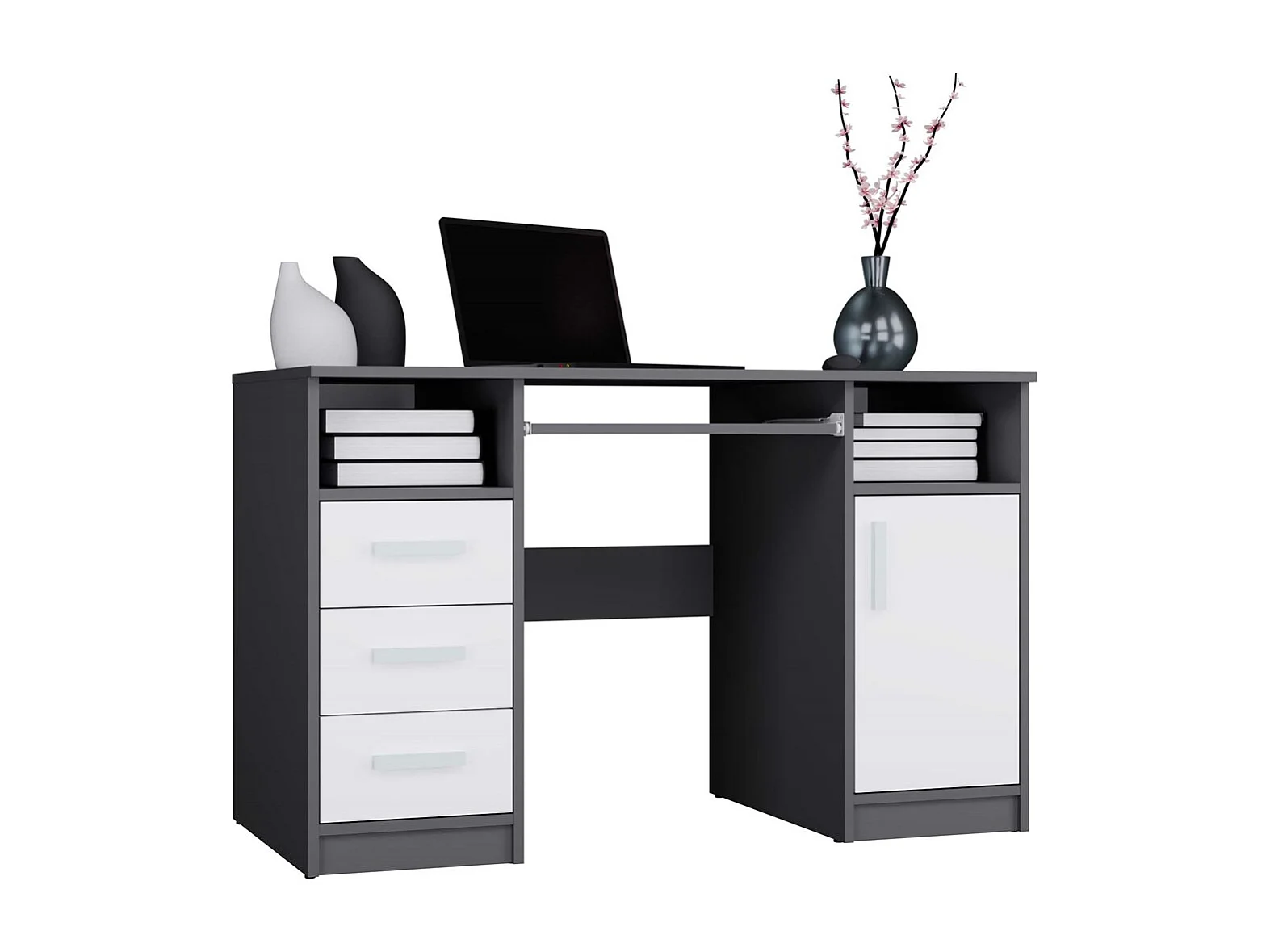 DELTA - Bureau 120cm 3 tiroirs avec armoire et étagères pour bureau / chambre - Anthracite & blanc