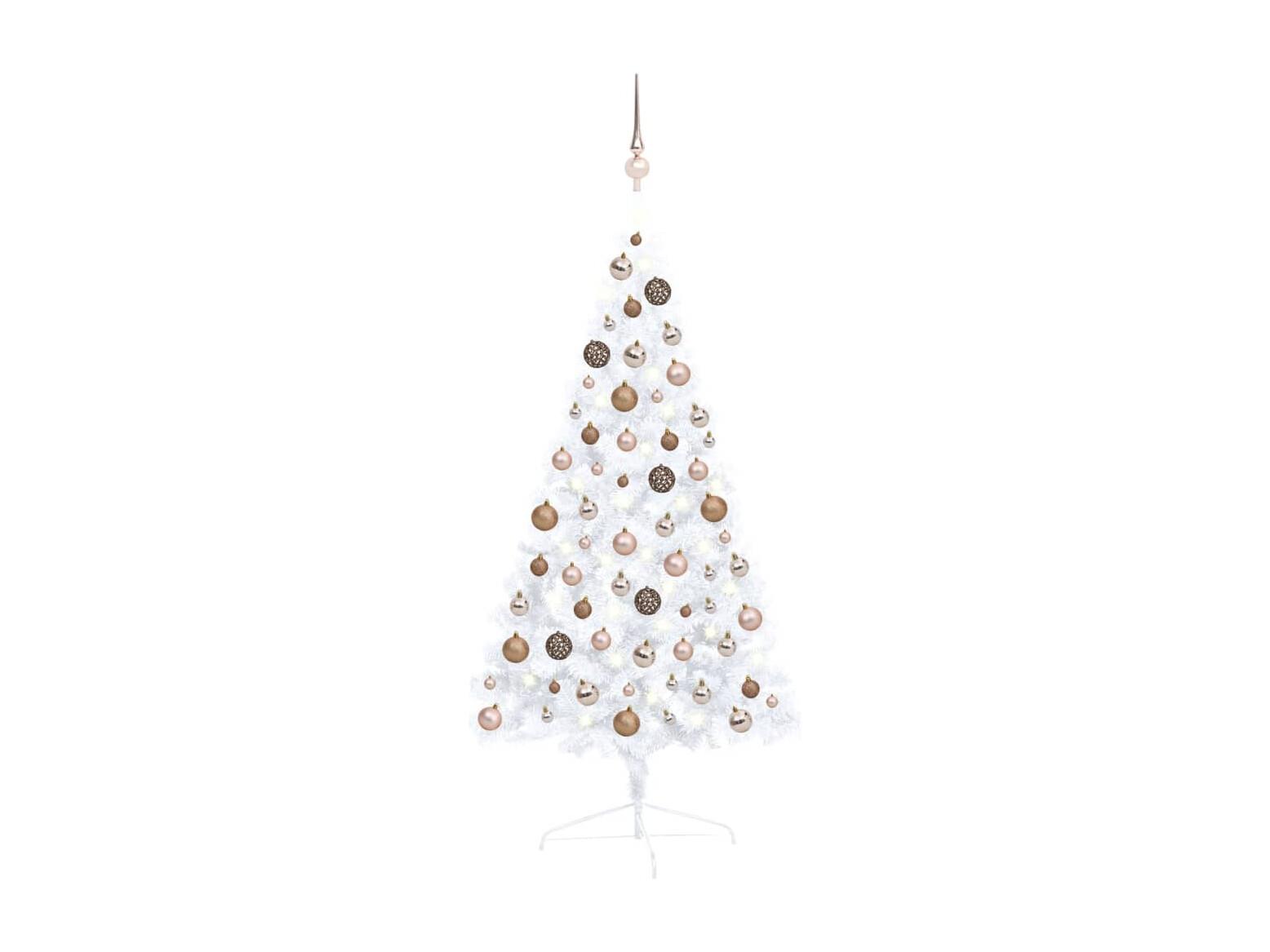 Demi-arbre de Noël artificiel avec LED et boules Blanc 120 cm