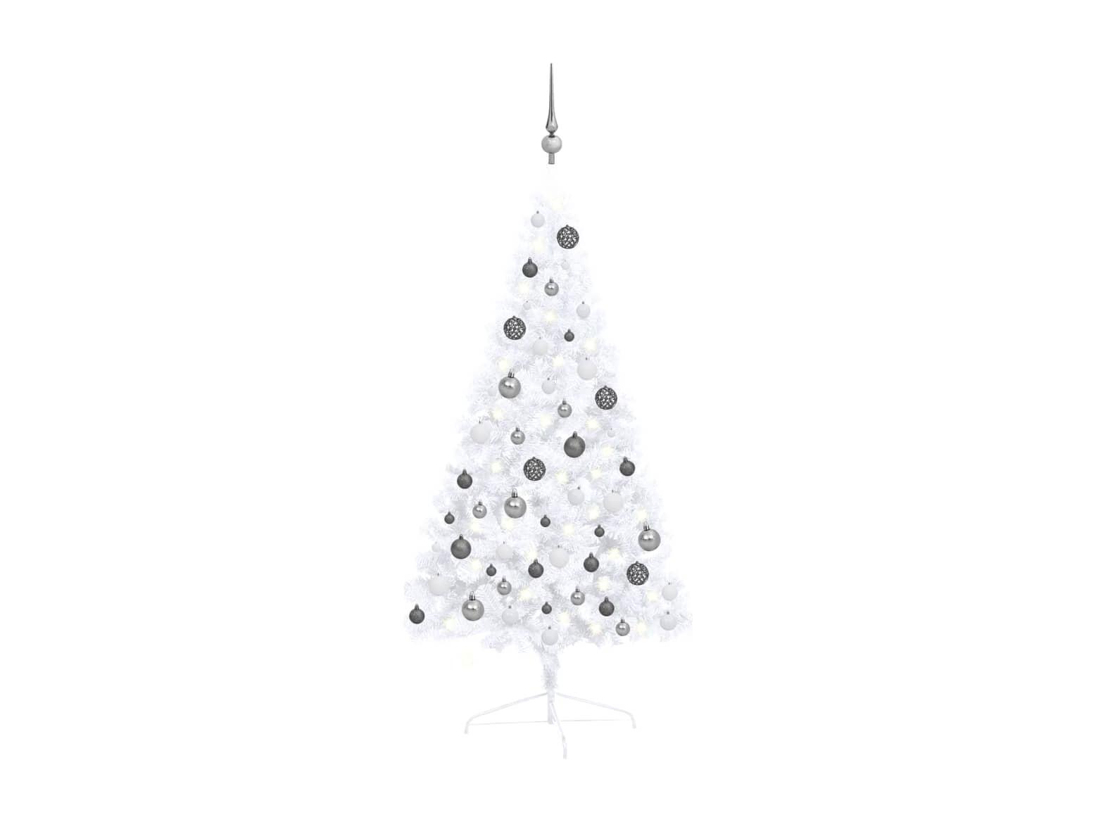 Demi-arbre de Noël artificiel avec LED et boules Blanc 120 cm