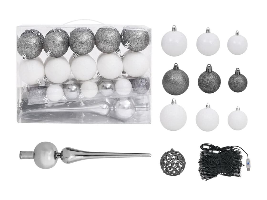 Arbre de Noël artificiel avec LED et boules Blanc 120 cm
