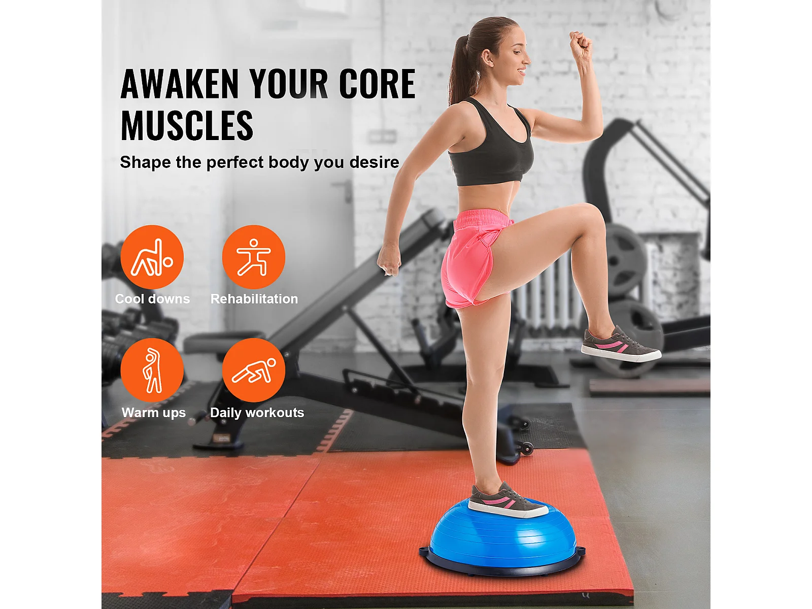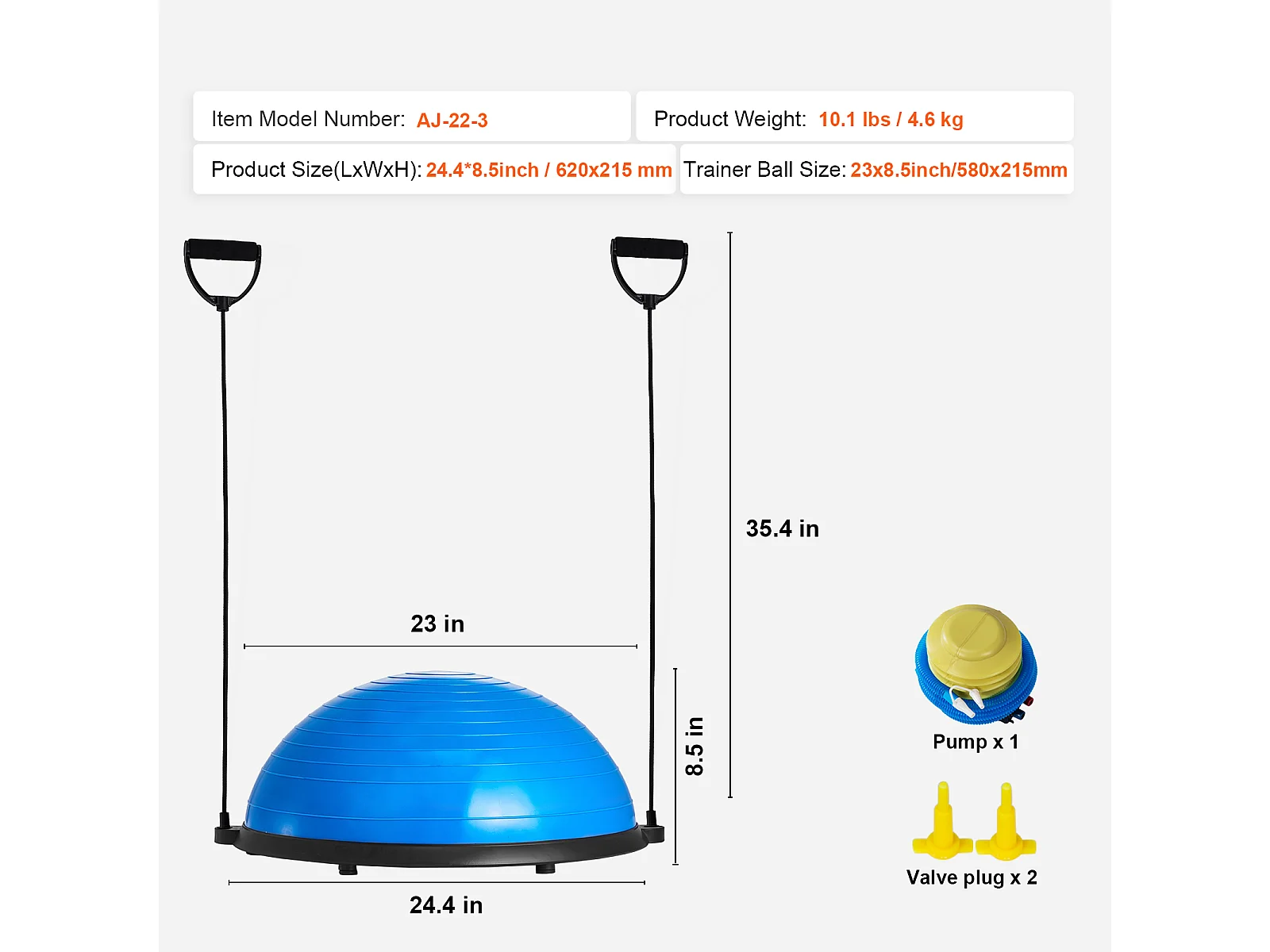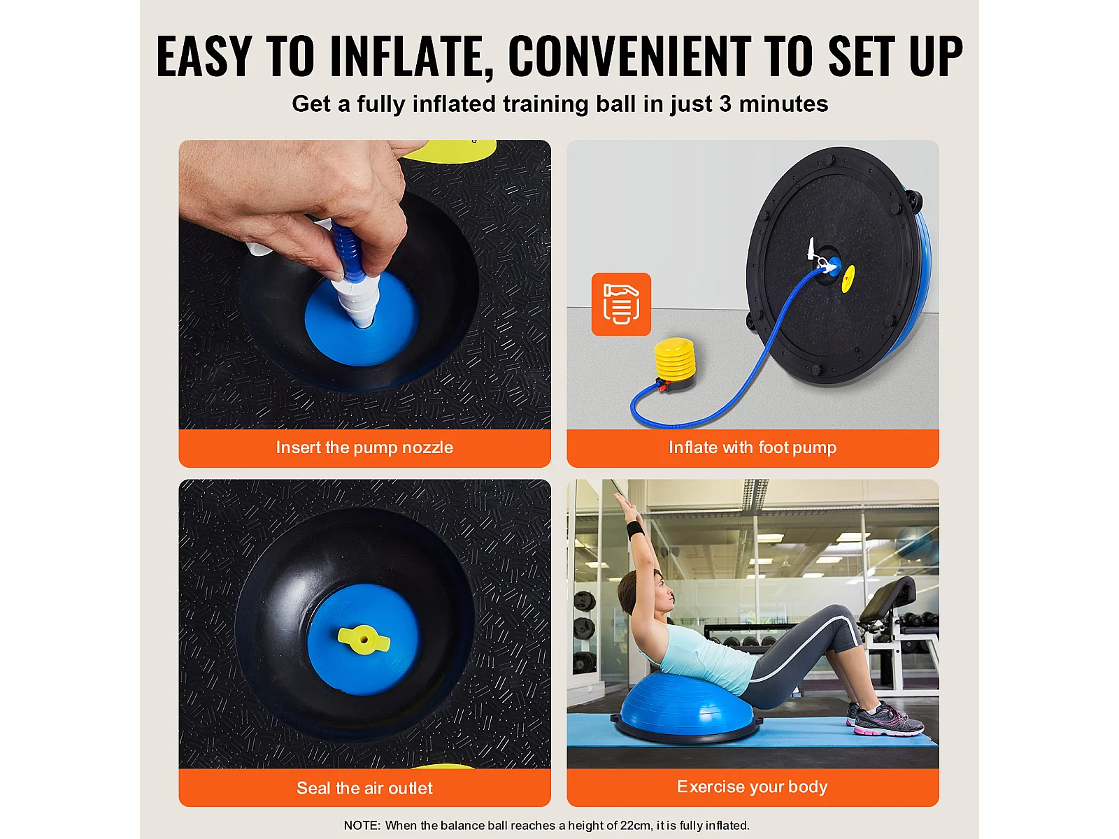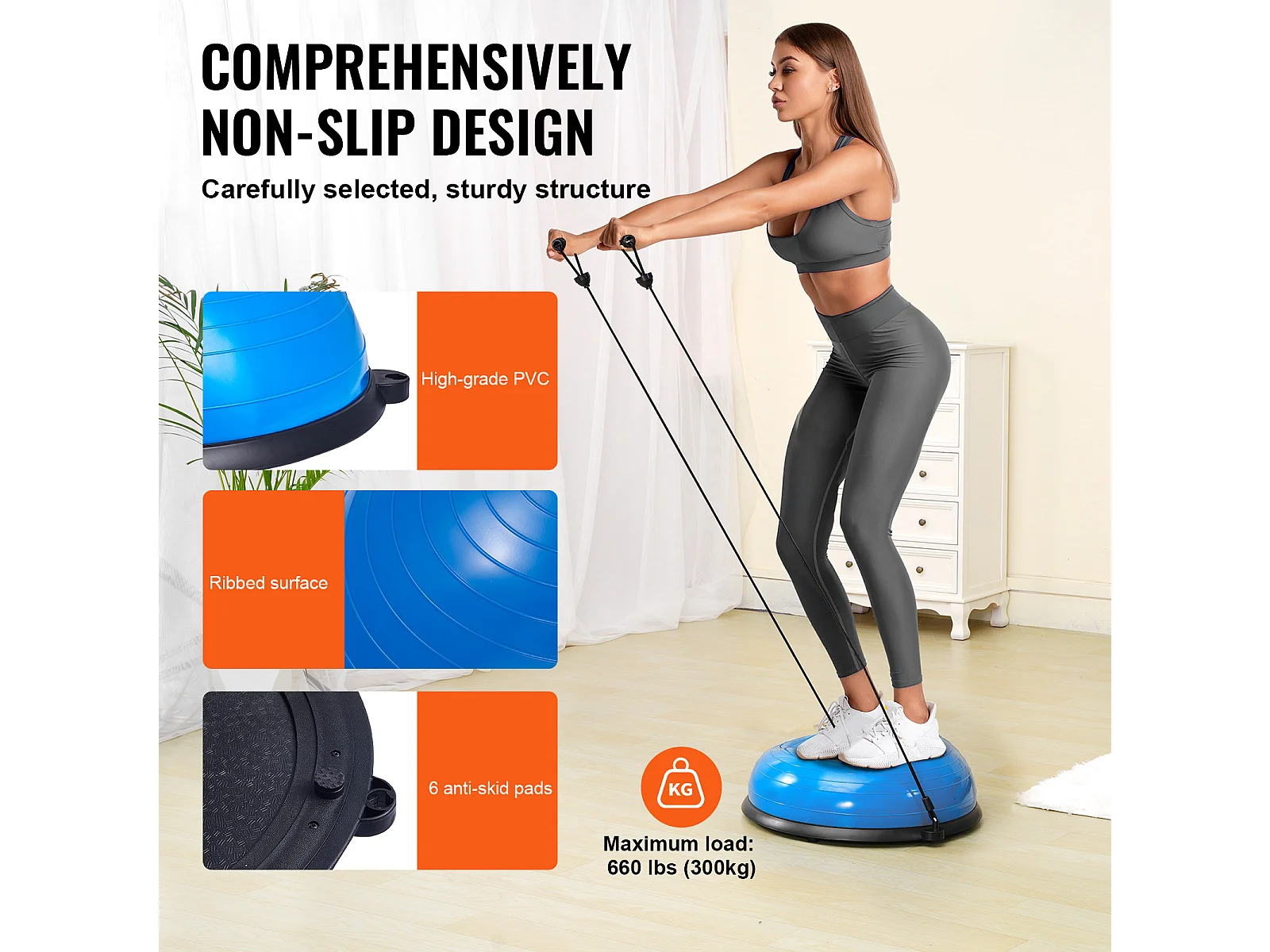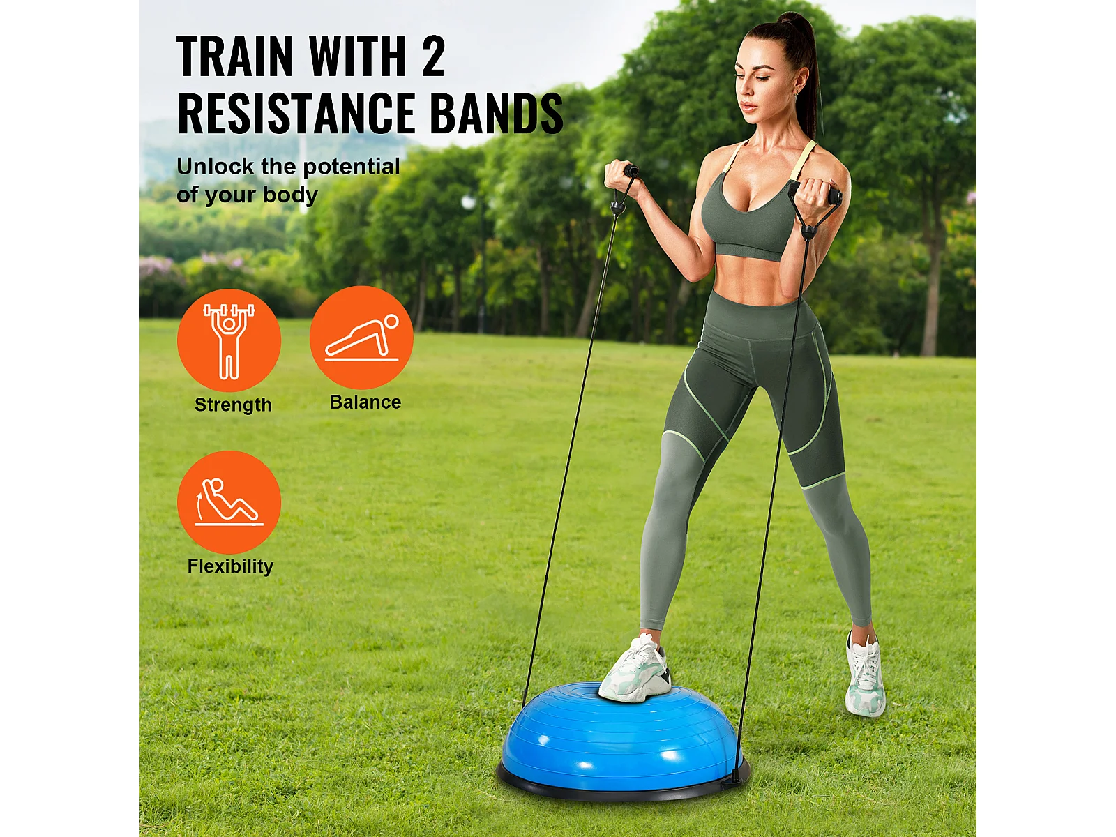 Demi-Ballon SucceBuy d'Exercice 58.42cm pour Entraînement, Ballon de Stabilité pour le Yoga et l'Équilibre, Bandes de Résistance