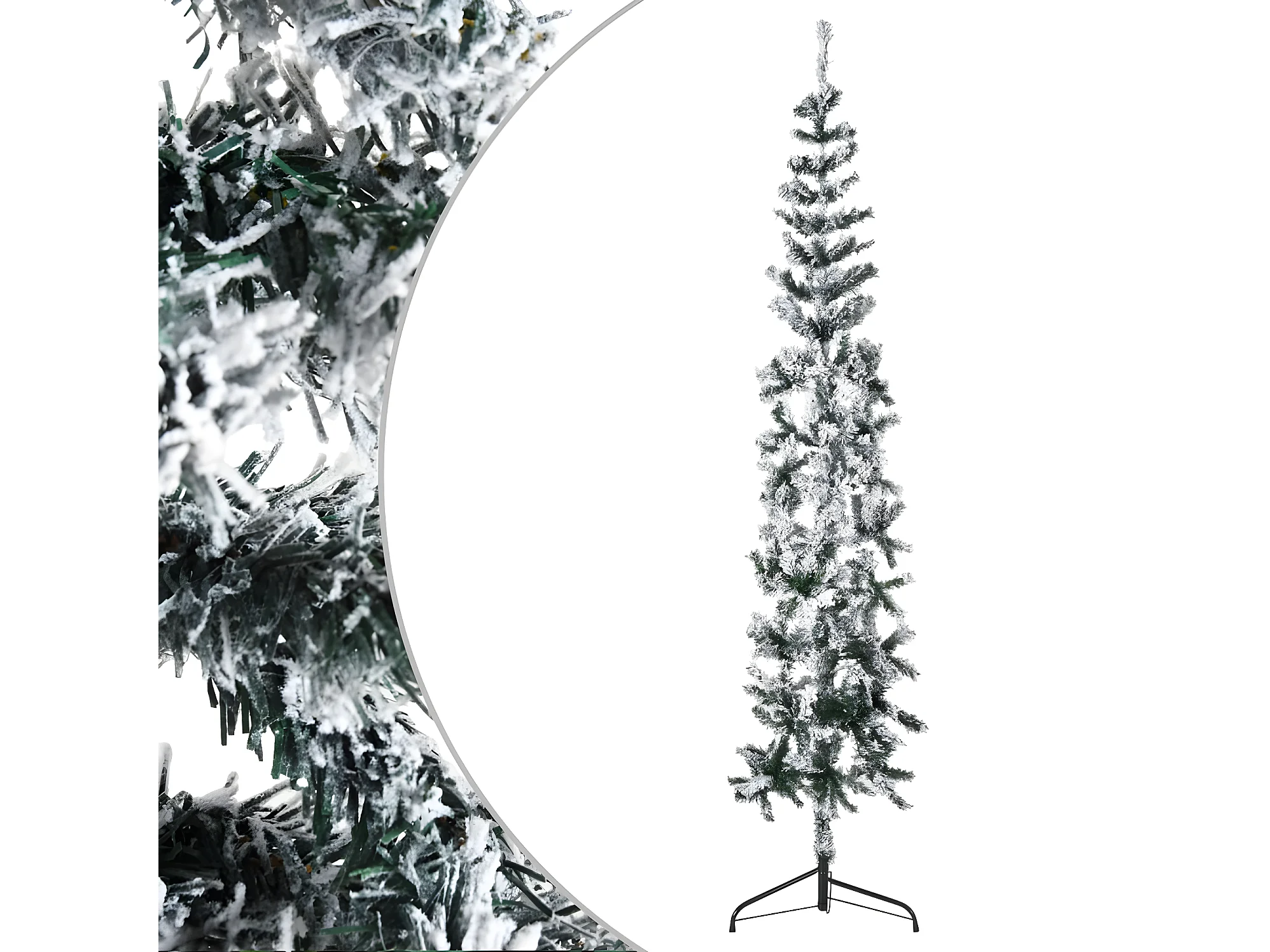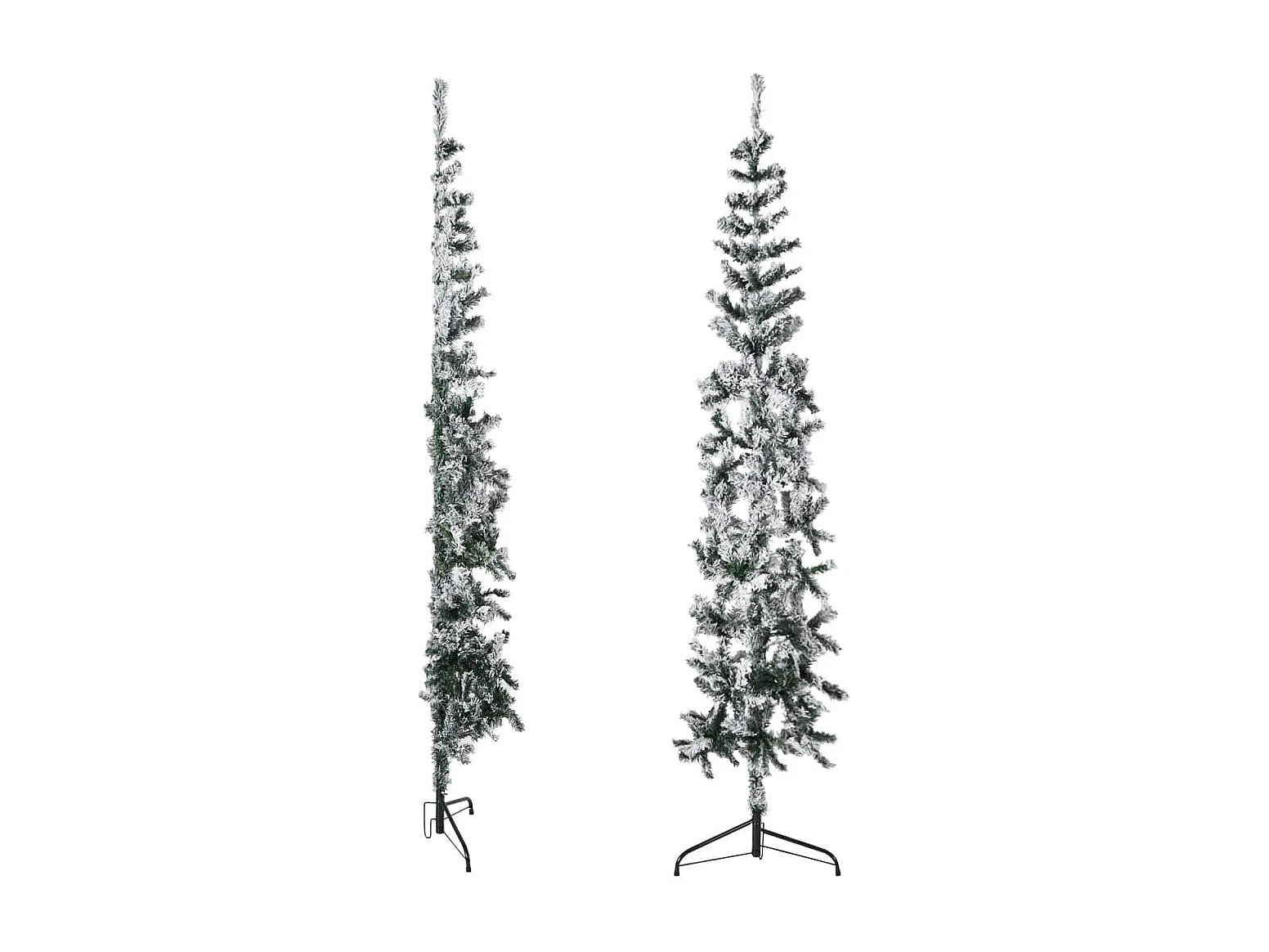 Demi sapin de No?l artificiel mince avec neige floquée 180 cm