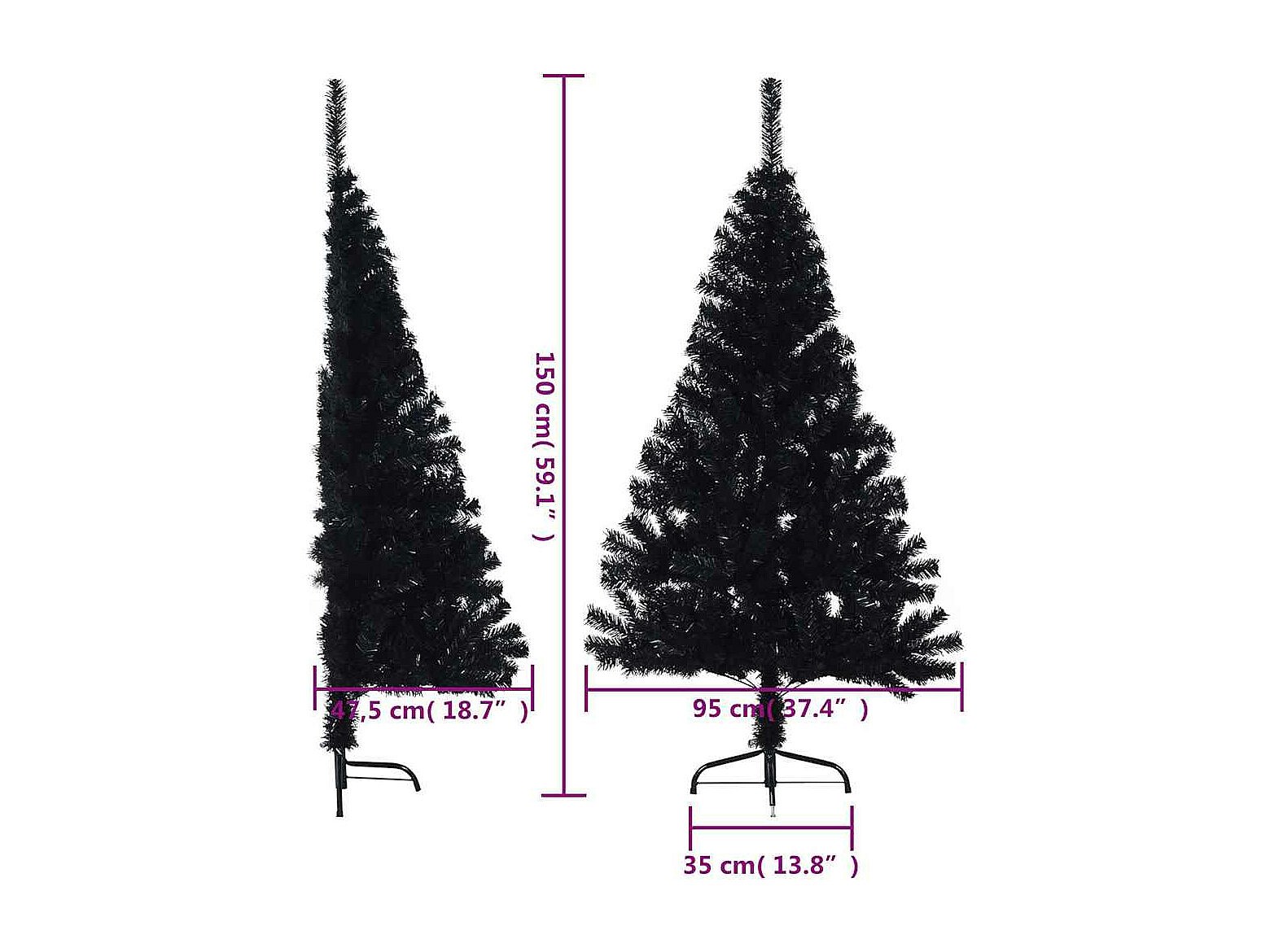 Demi sapin de Noël artificiel avec support Noir 150 cm PVC