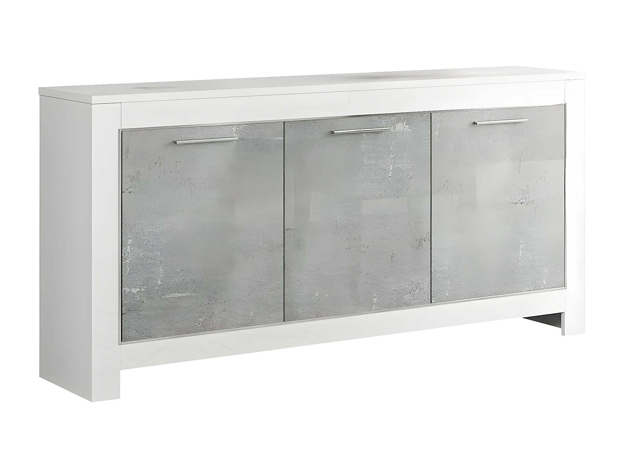 DENAE - Buffet 3 Portes L160cm Laqué Blanc Brillant et Gris Marbré