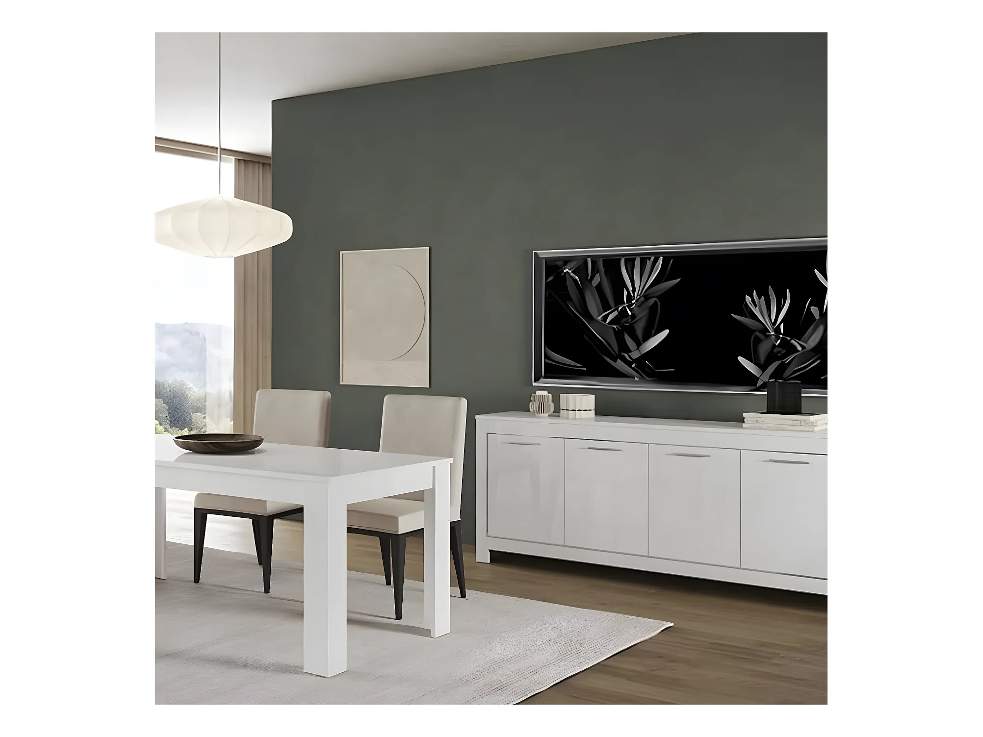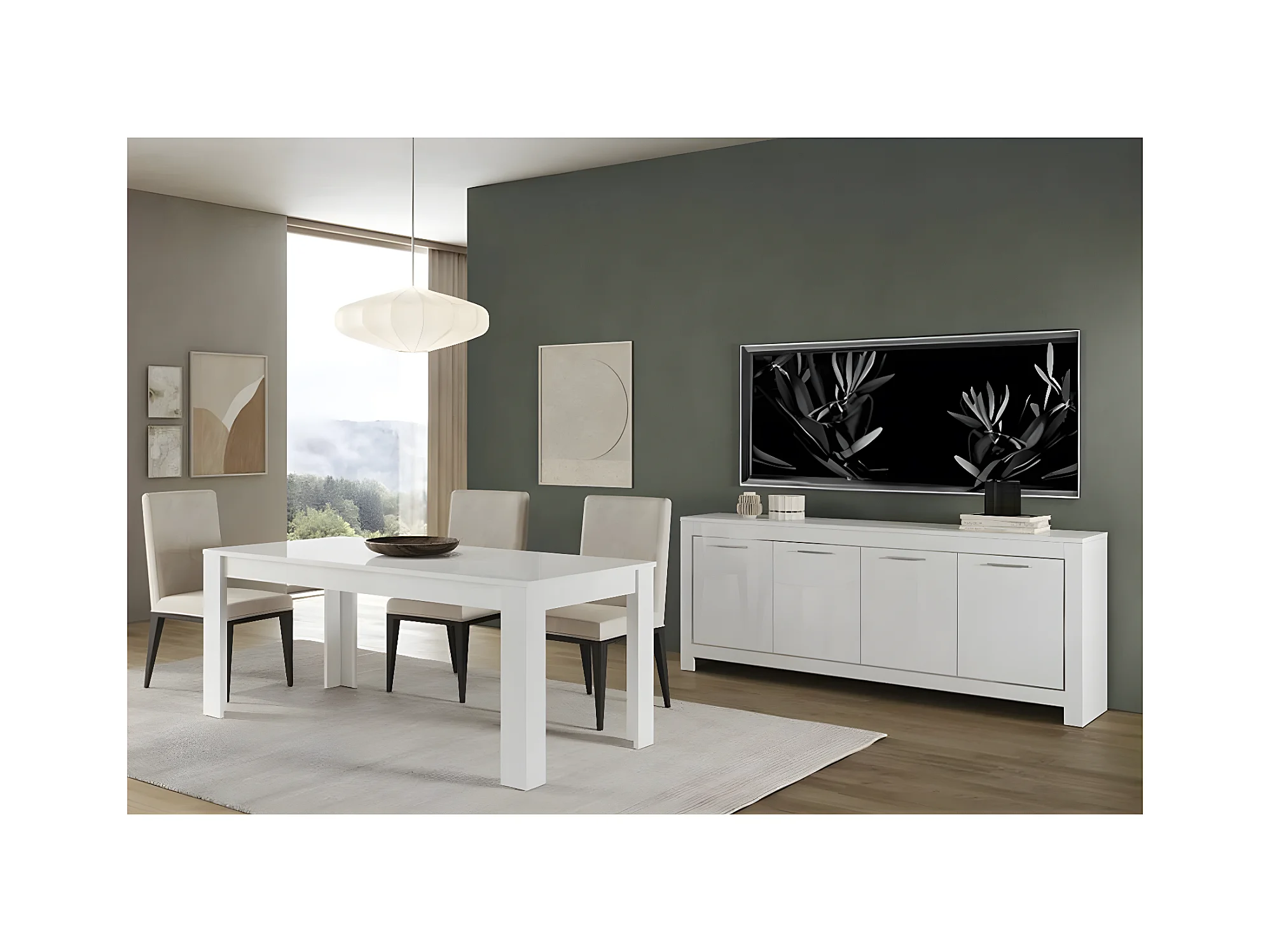DENAE - Ensemble Séjour Laqué Blanc Brillant Table 190cm + Buffet 4 Portes