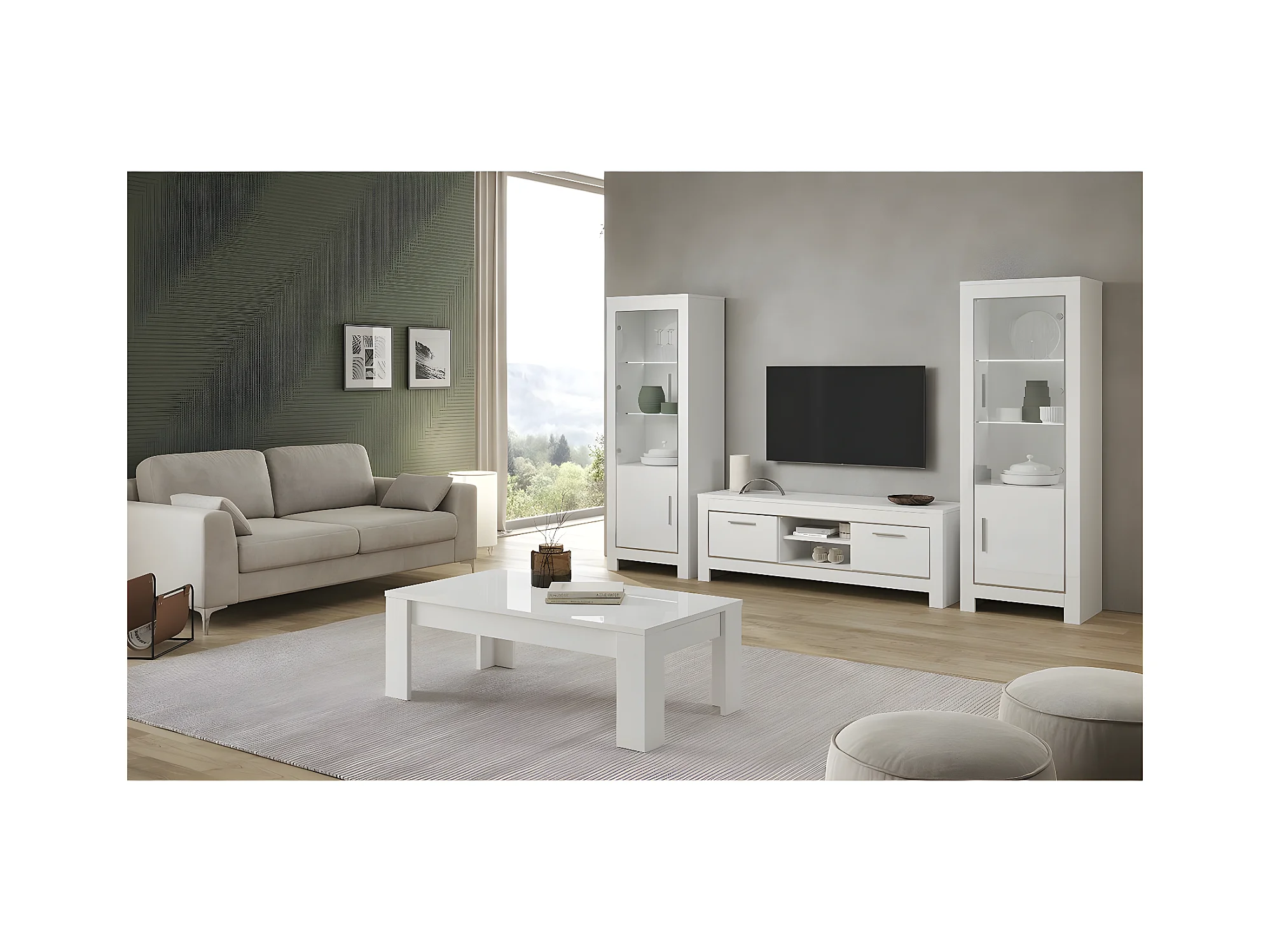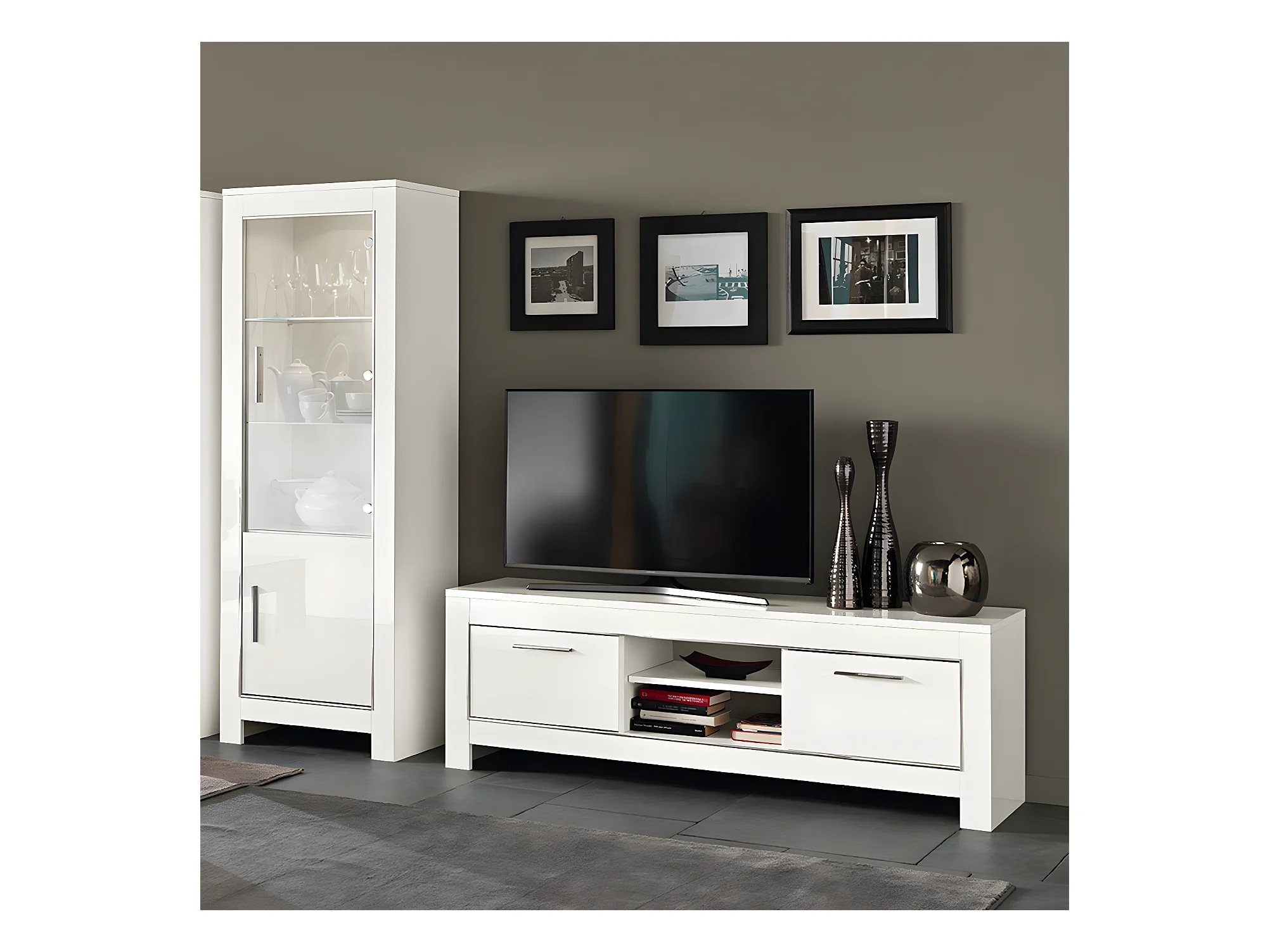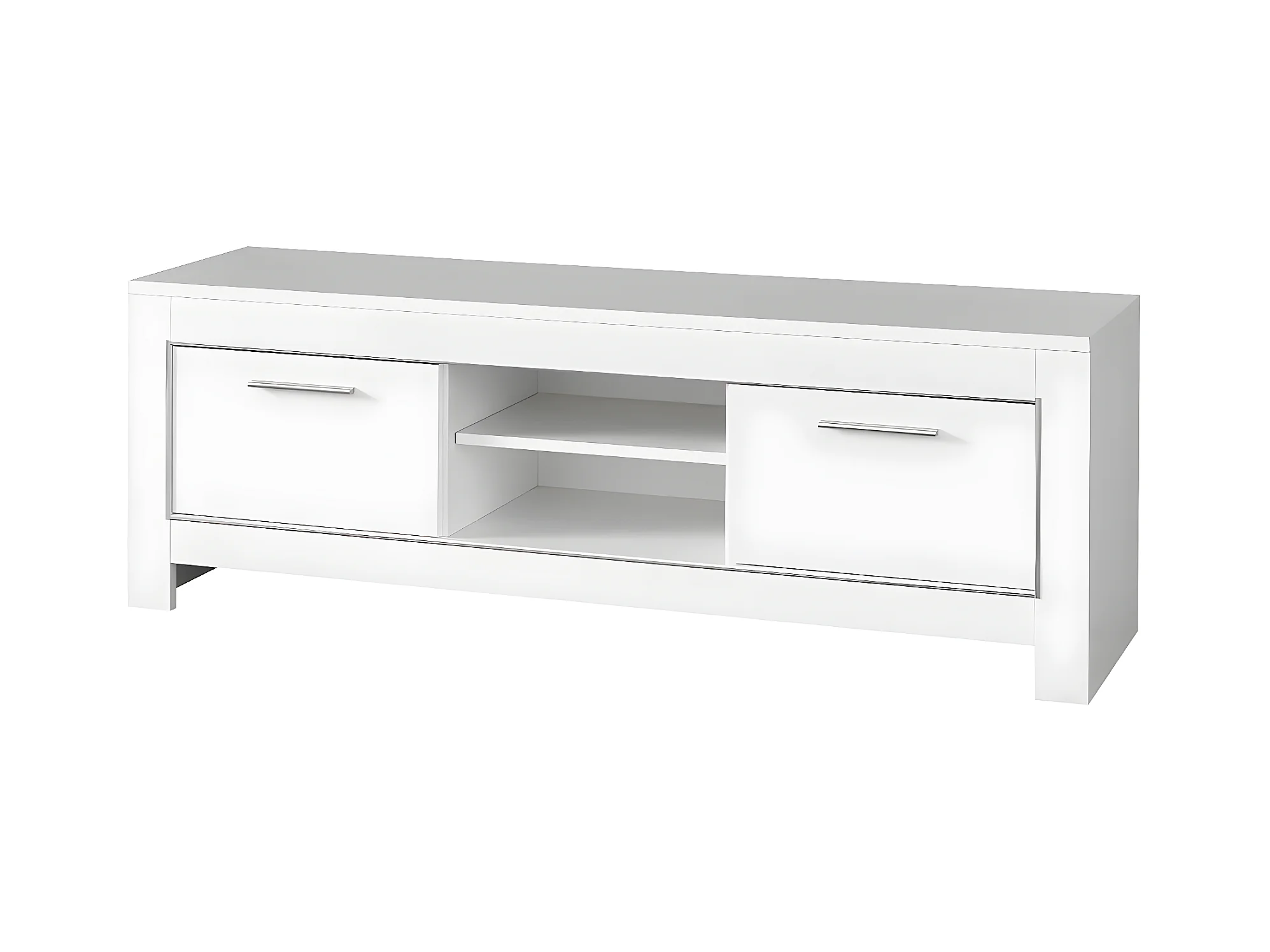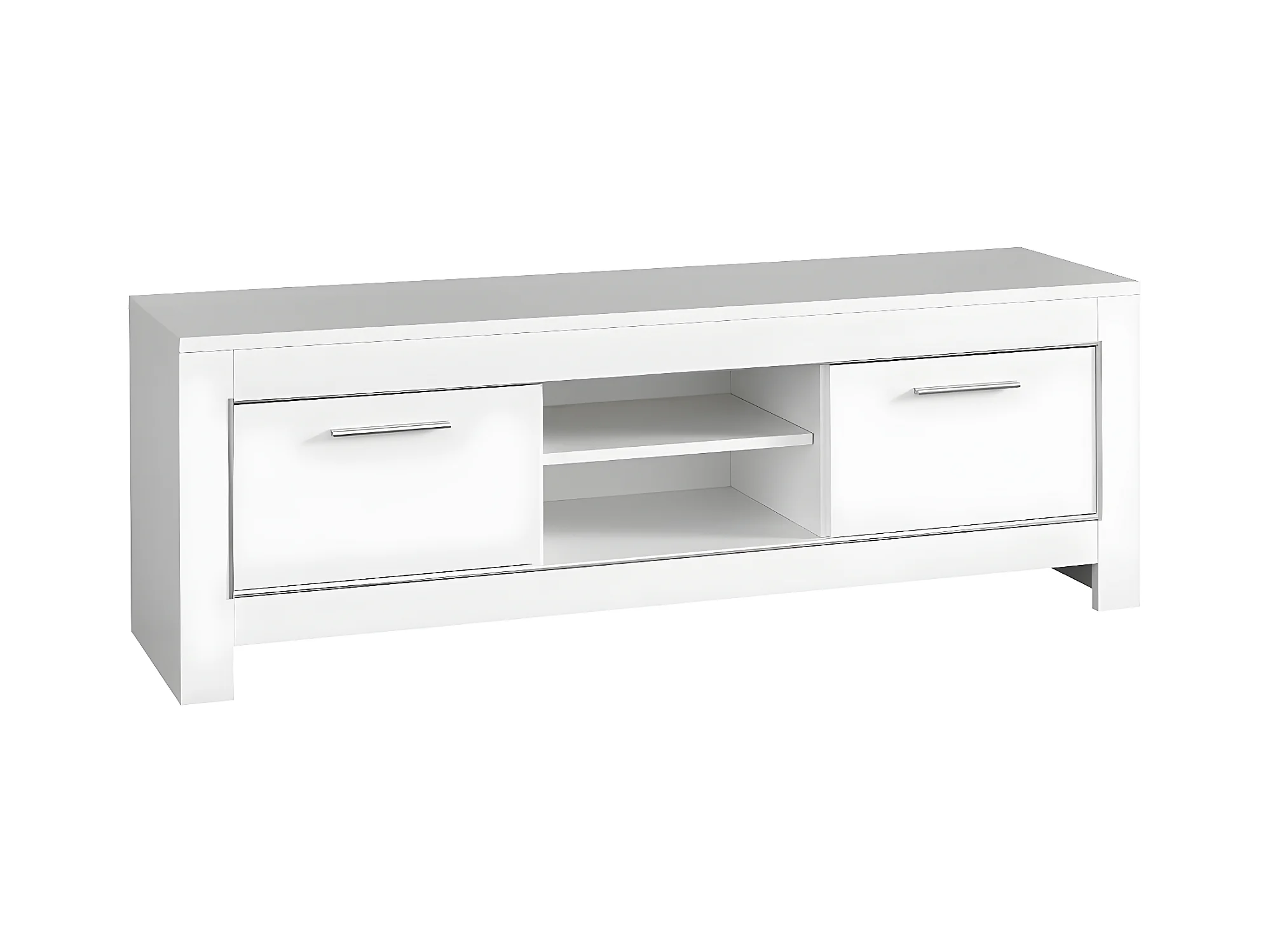 DENAE - Meuble TV 2 Portes L160cm Laqué Blanc Brillant