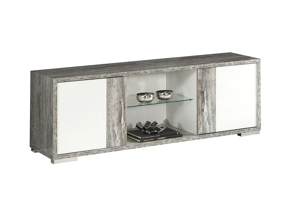 DENYS - Ensemble Salon Laqué Blanc et Effet Bois Taupe