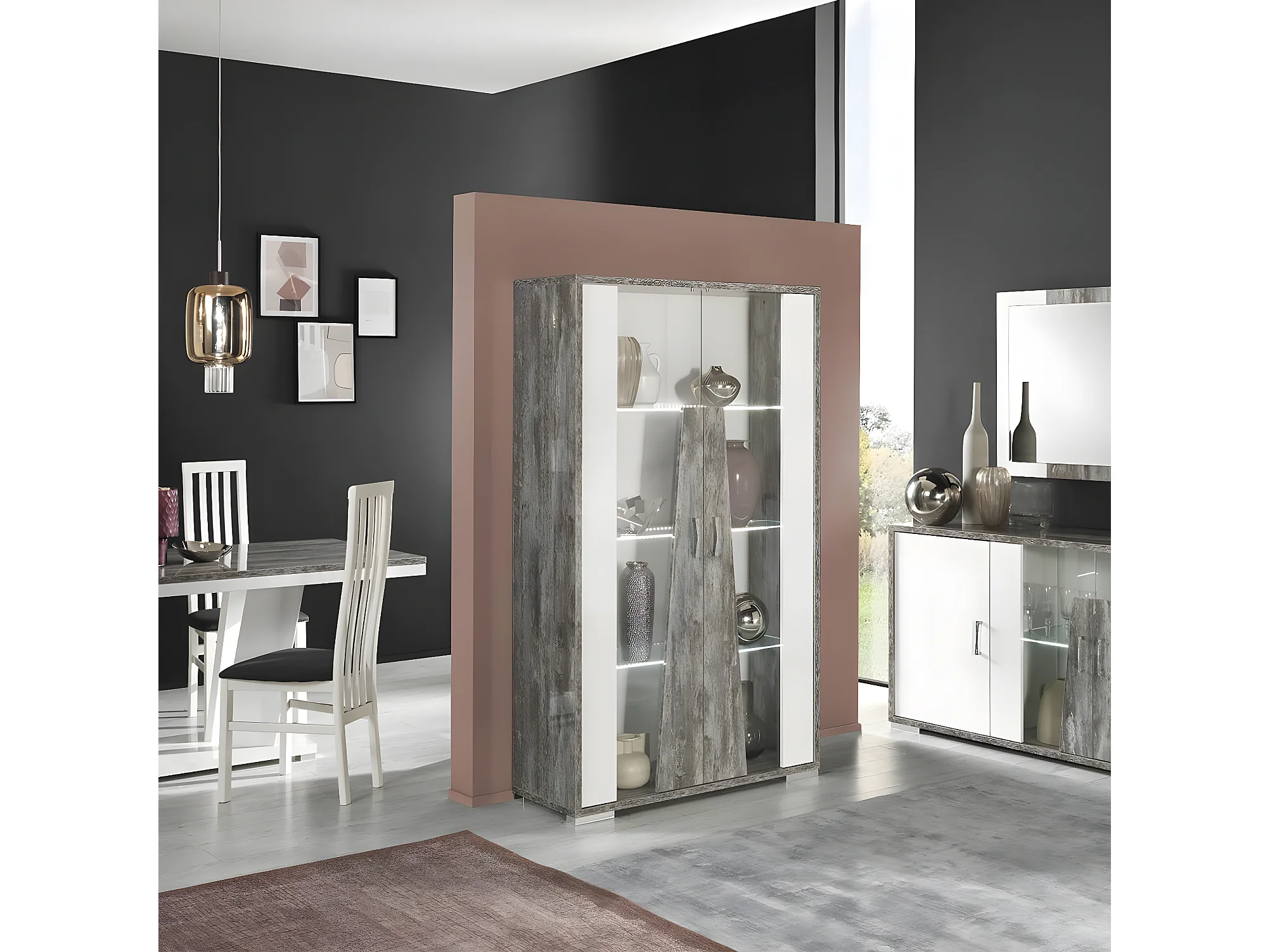 DENYS - Ensemble Séjour Complet Laqué Blanc et Effet Bois Taupe