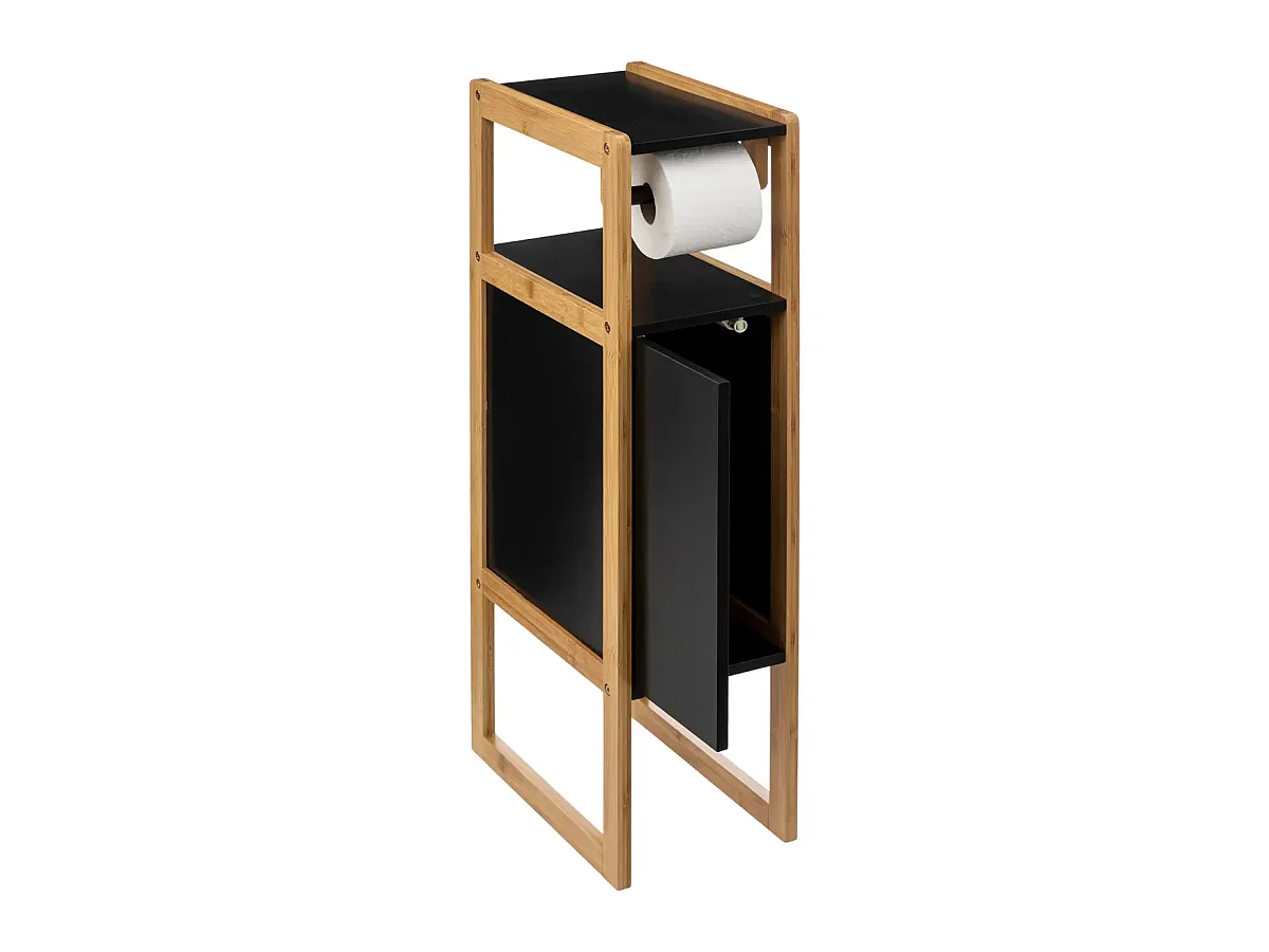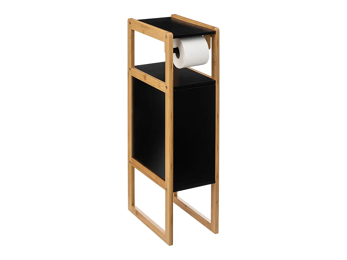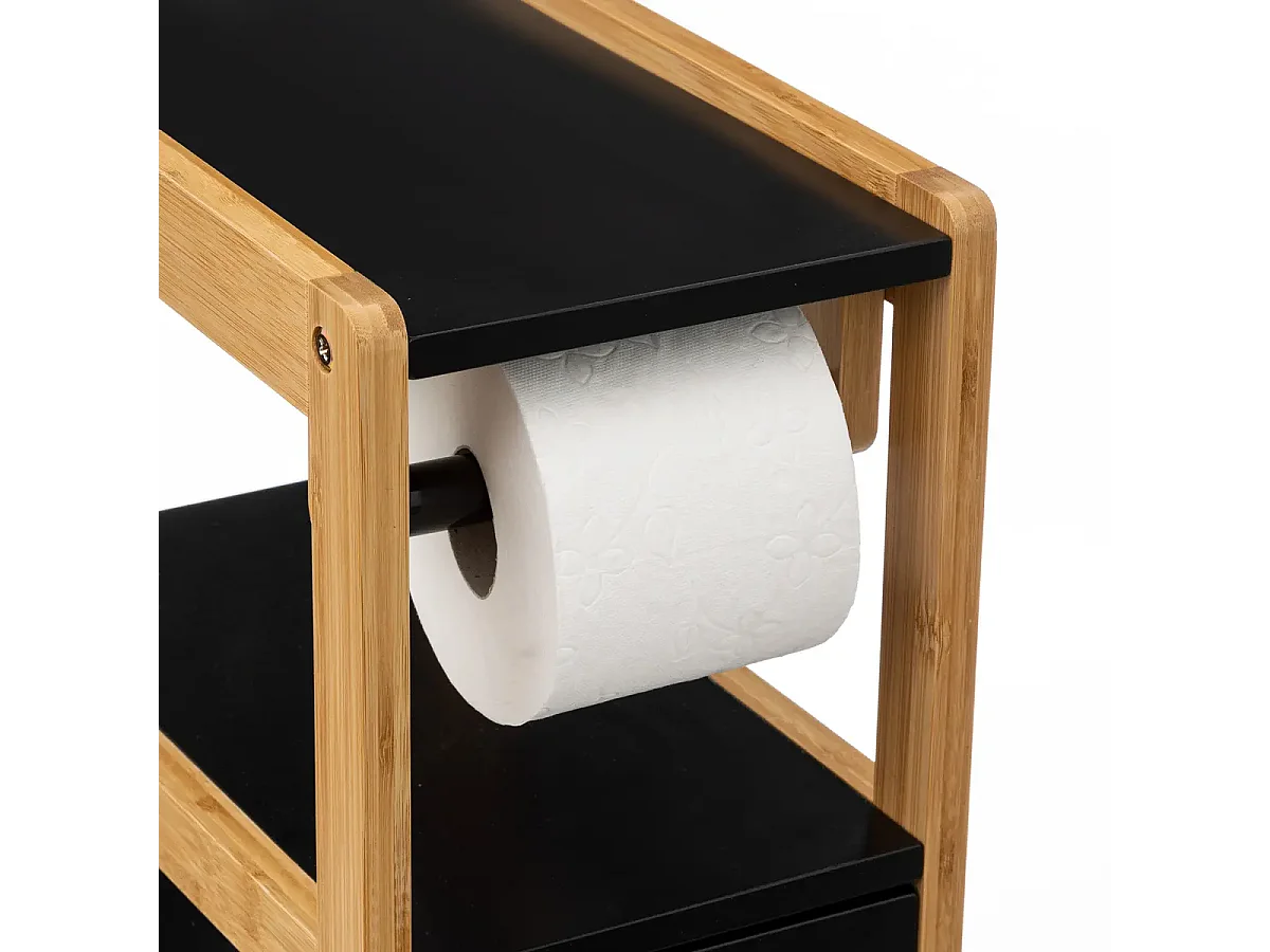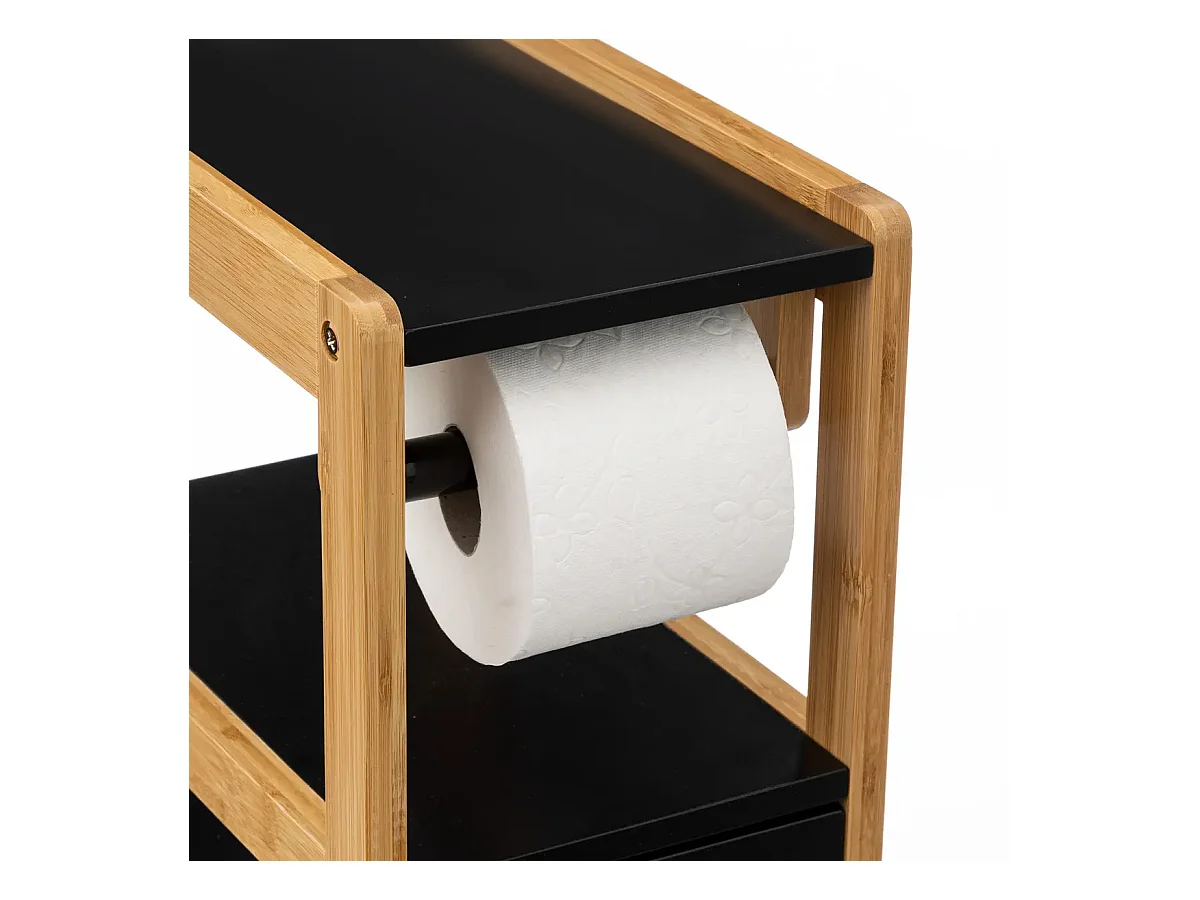 Brosse WC et Dérouleur Papier toilette en Bambou et métal Noir H 80 cm