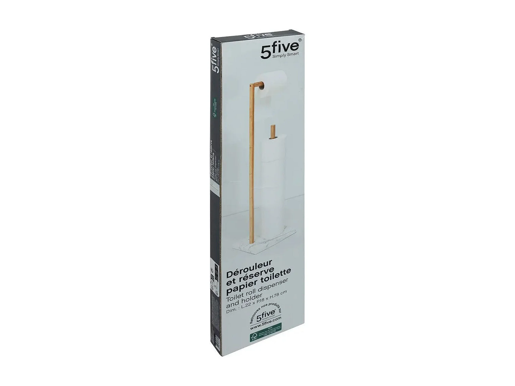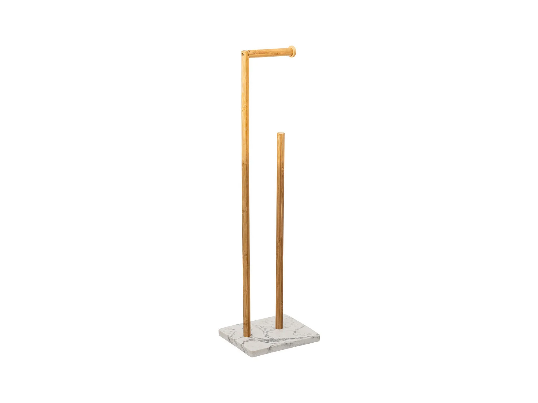 Dérouleur papier toilette WC avec réserve en Bambou et résine Blanc marbré H 78 cm