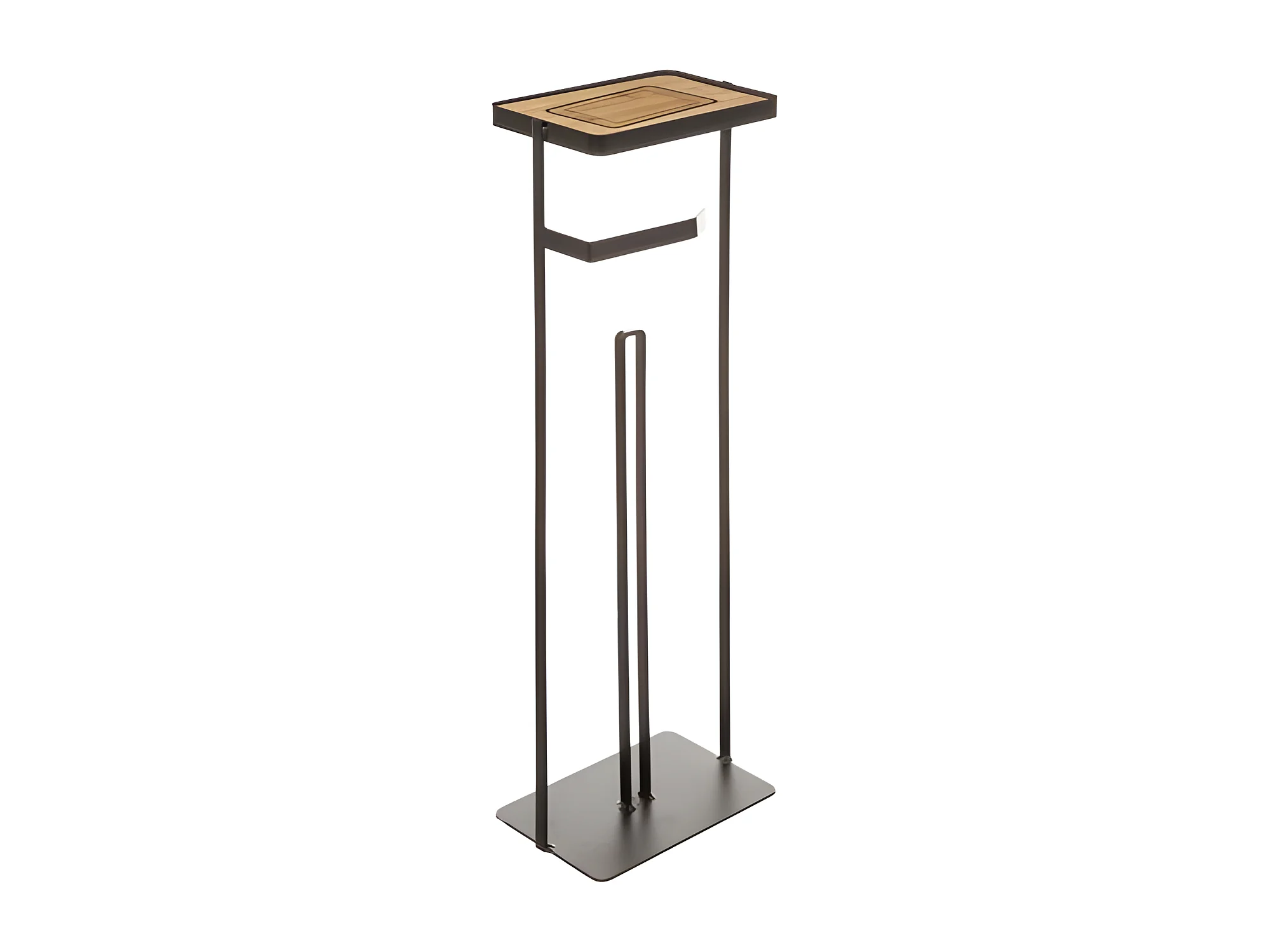 Dérouleur papier toilette Wc avec réserve et support téléphone en métal noir charbon - Longueur 18 x Profondeur 12 x Hauteur 59,2 cm