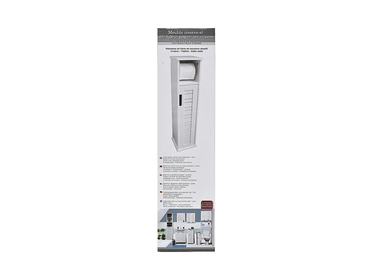 Réserve et Dérouleur de Papier WC 1 porte et 1 étagère H 75 cm - Blanc Miami