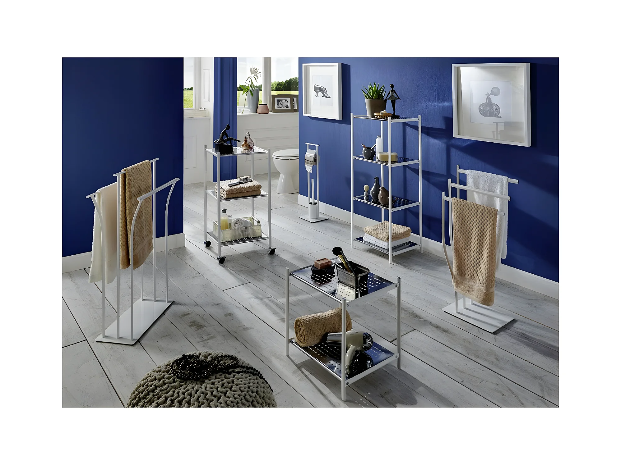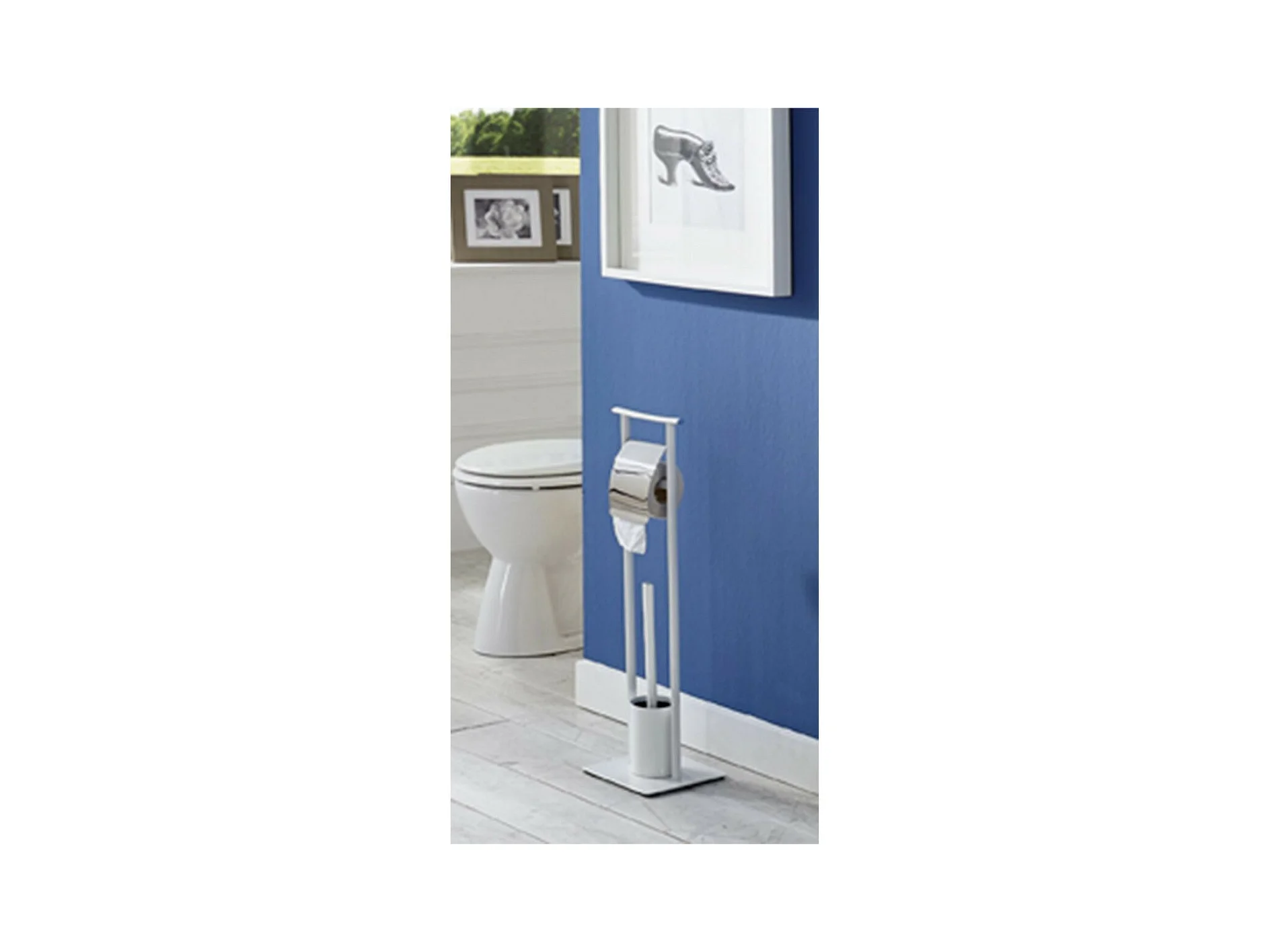 Brosse WC avec support et Dérouleur Papier toilette en métal Blanc H 68 cm