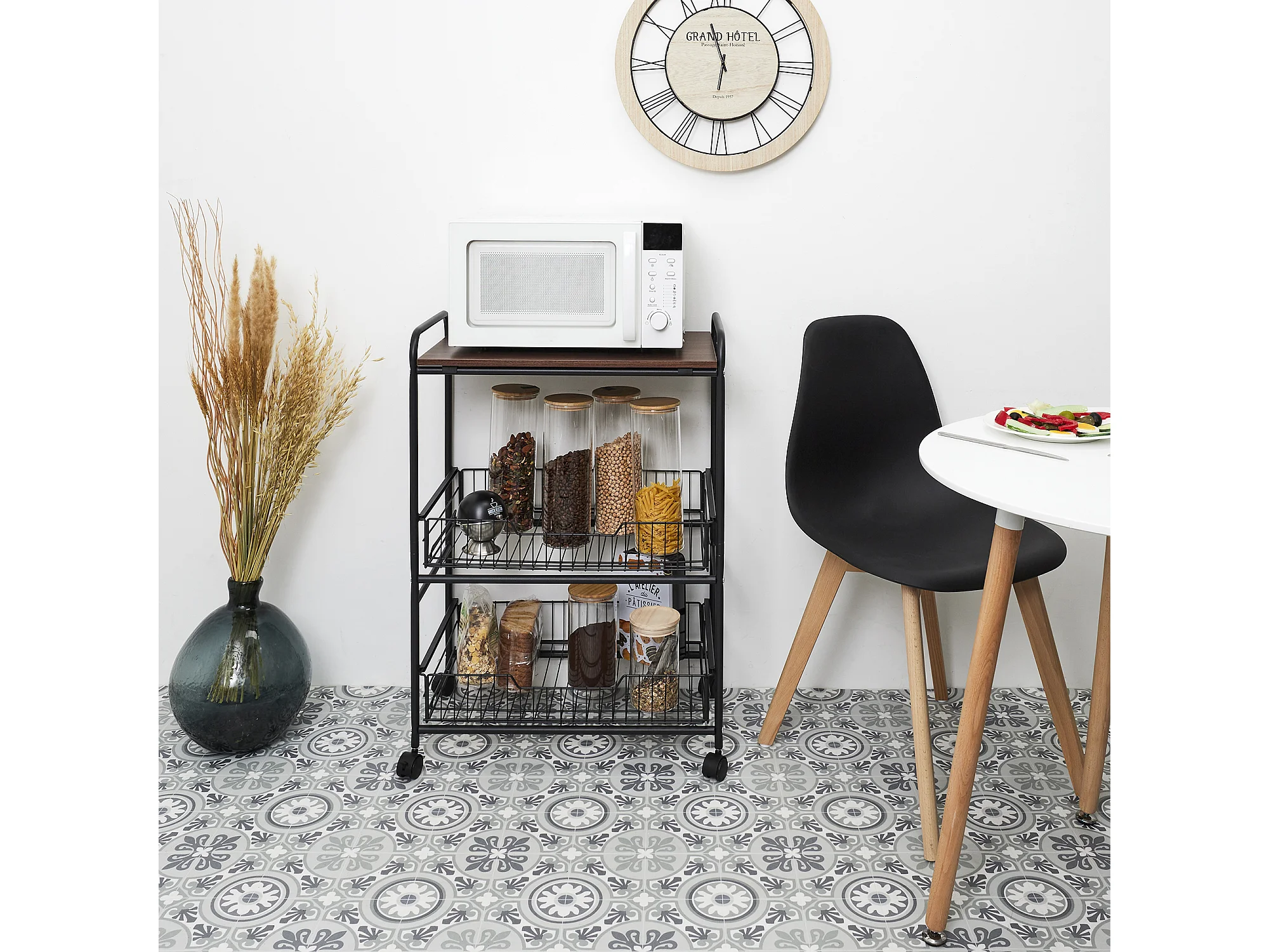 Desserte Avec Roulettes Etagere Et 2 Tiroirs Noir