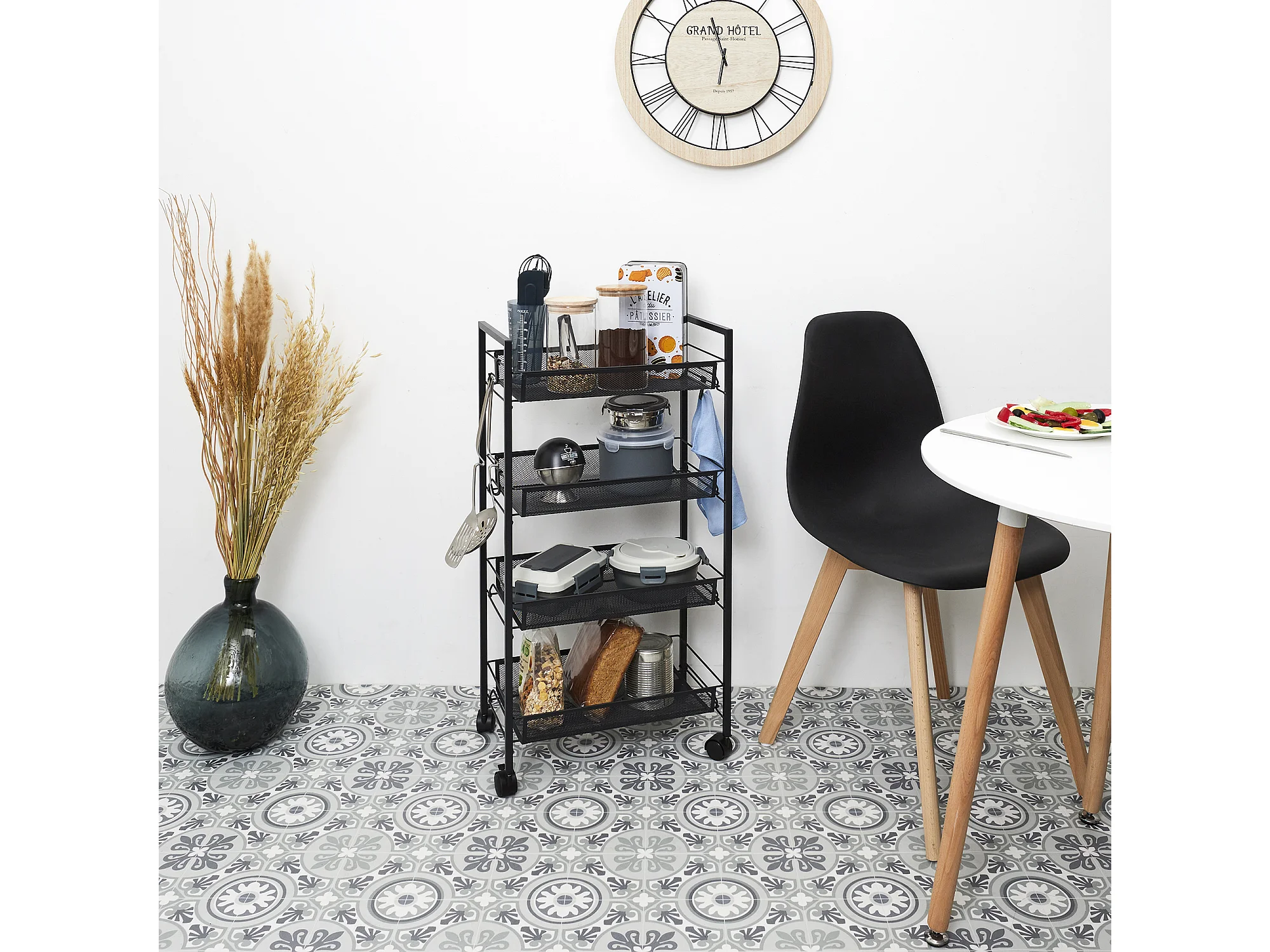 Desserte Avec Roulettes 4 Niveaux Noir