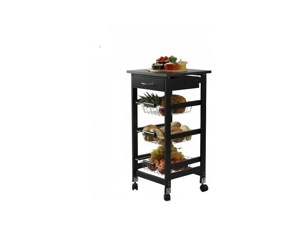 Desserte à roulettes avec 1 tiroirs et 3 paniers - H. 76 cm - Noir IDtendancedeco