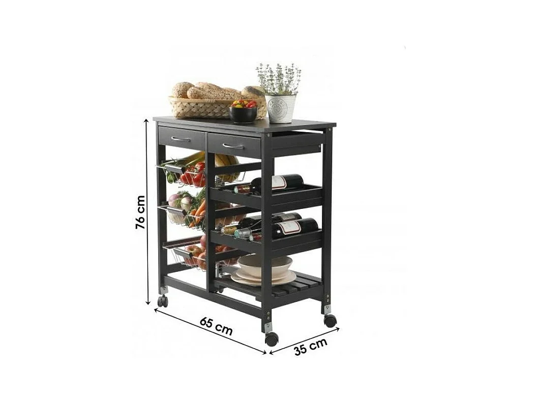 Desserte à roulettes avec 2 tiroirs et de multiples rangements - H. 76 cm - Noir IDtendancedeco