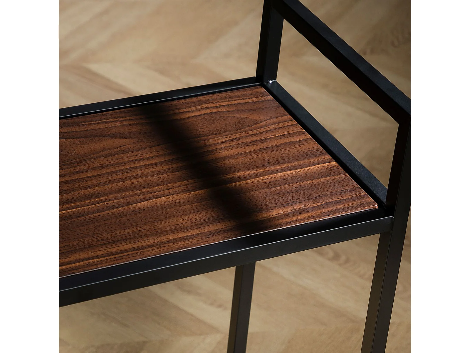 Desserte de cuisine style industriel collection TAMPA structure en métal noir et plateau en bois.