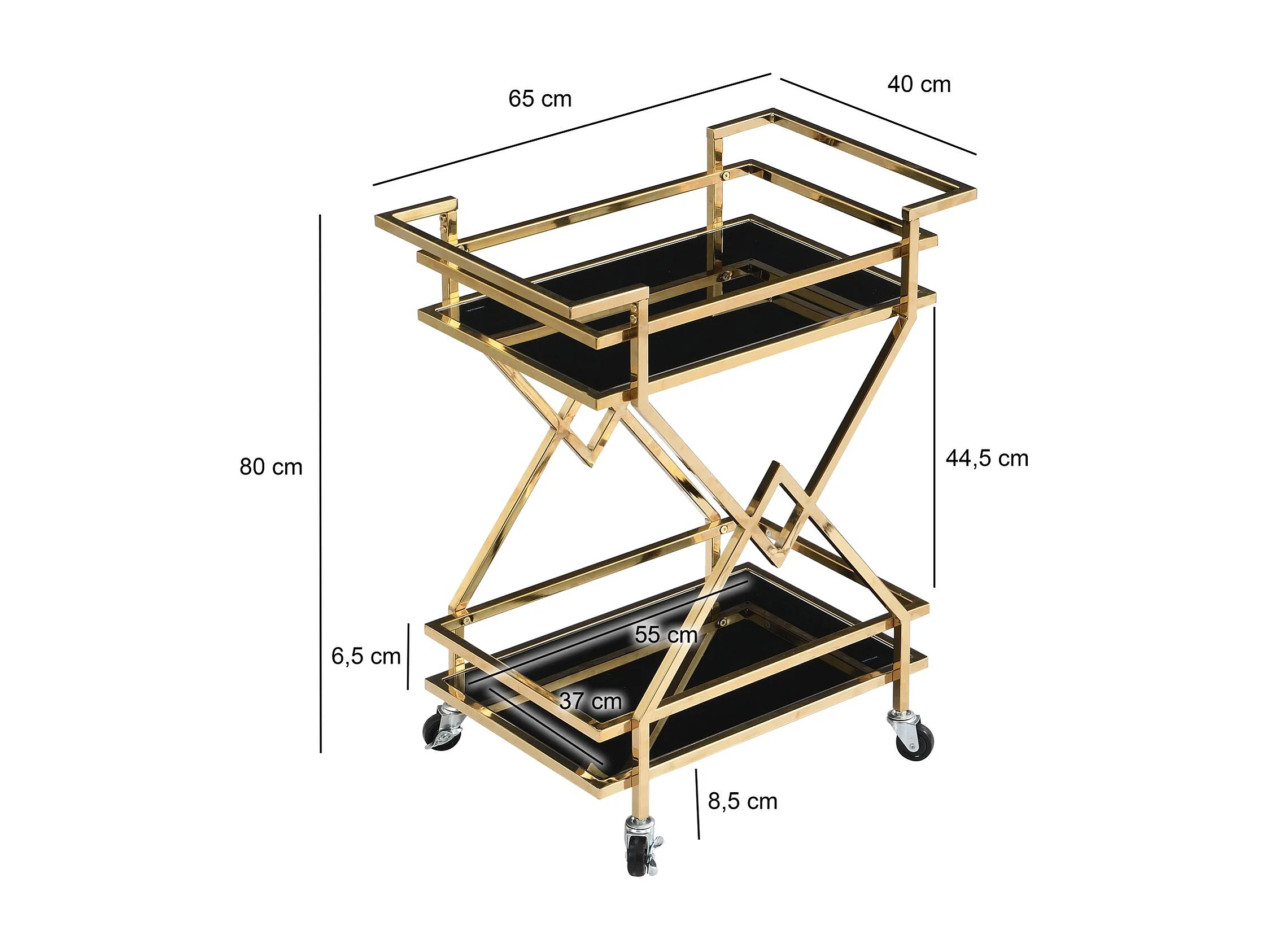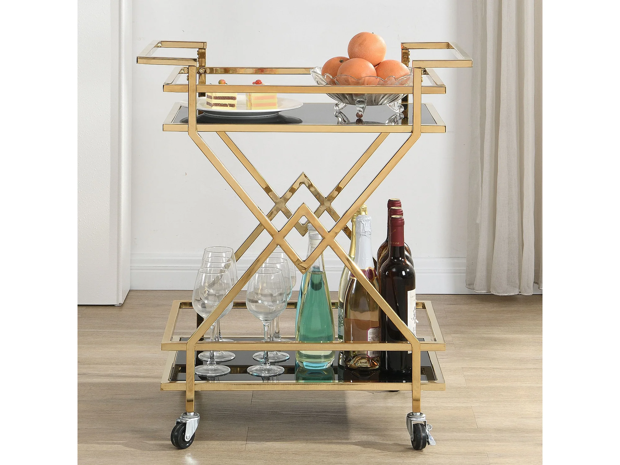 Desserte Chariot de bar moderne à roulettes Verre doré Métal 65x80x40 cm