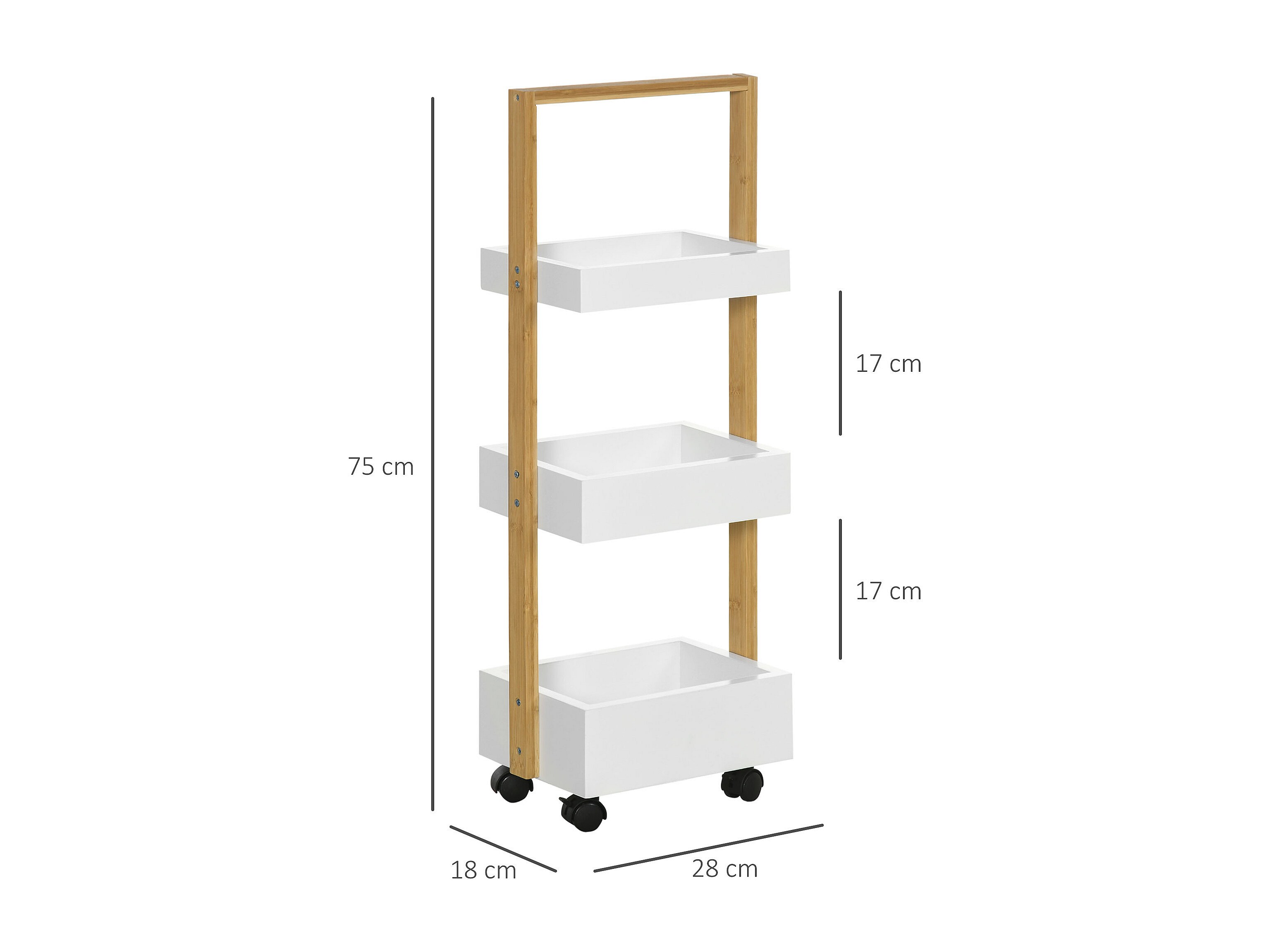Desserte chariot de service 3 compartiments MDF blanc structure bois de bambou verni