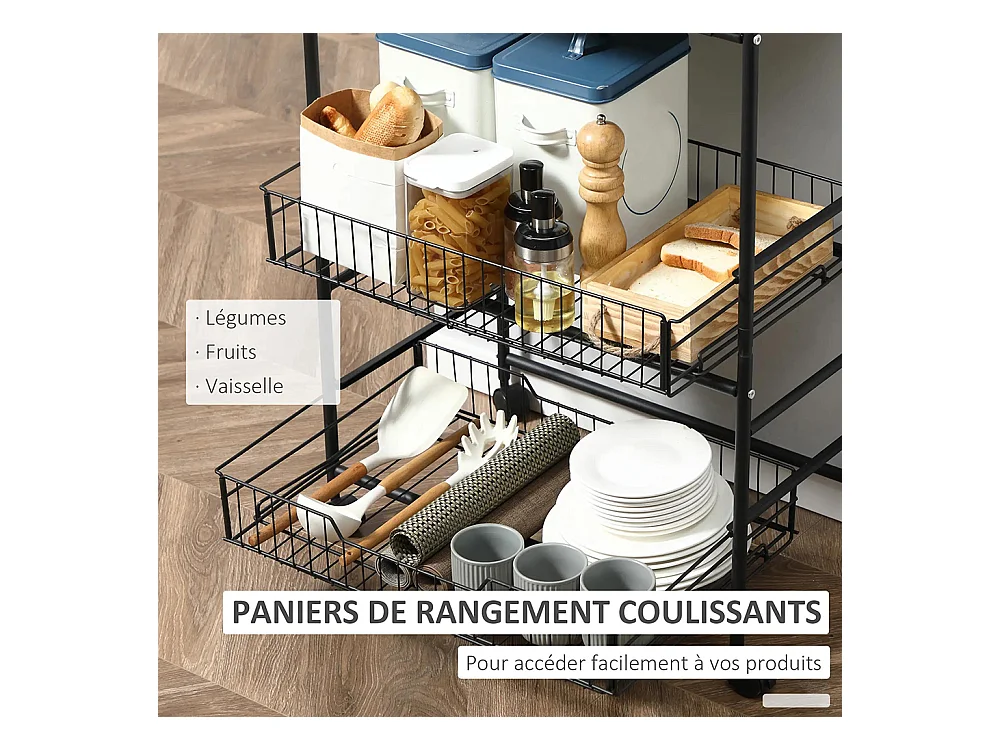 Chariot de service cuisine moderne cloisons amovibles buffet chariot service plateau bois rangements extensibles noir