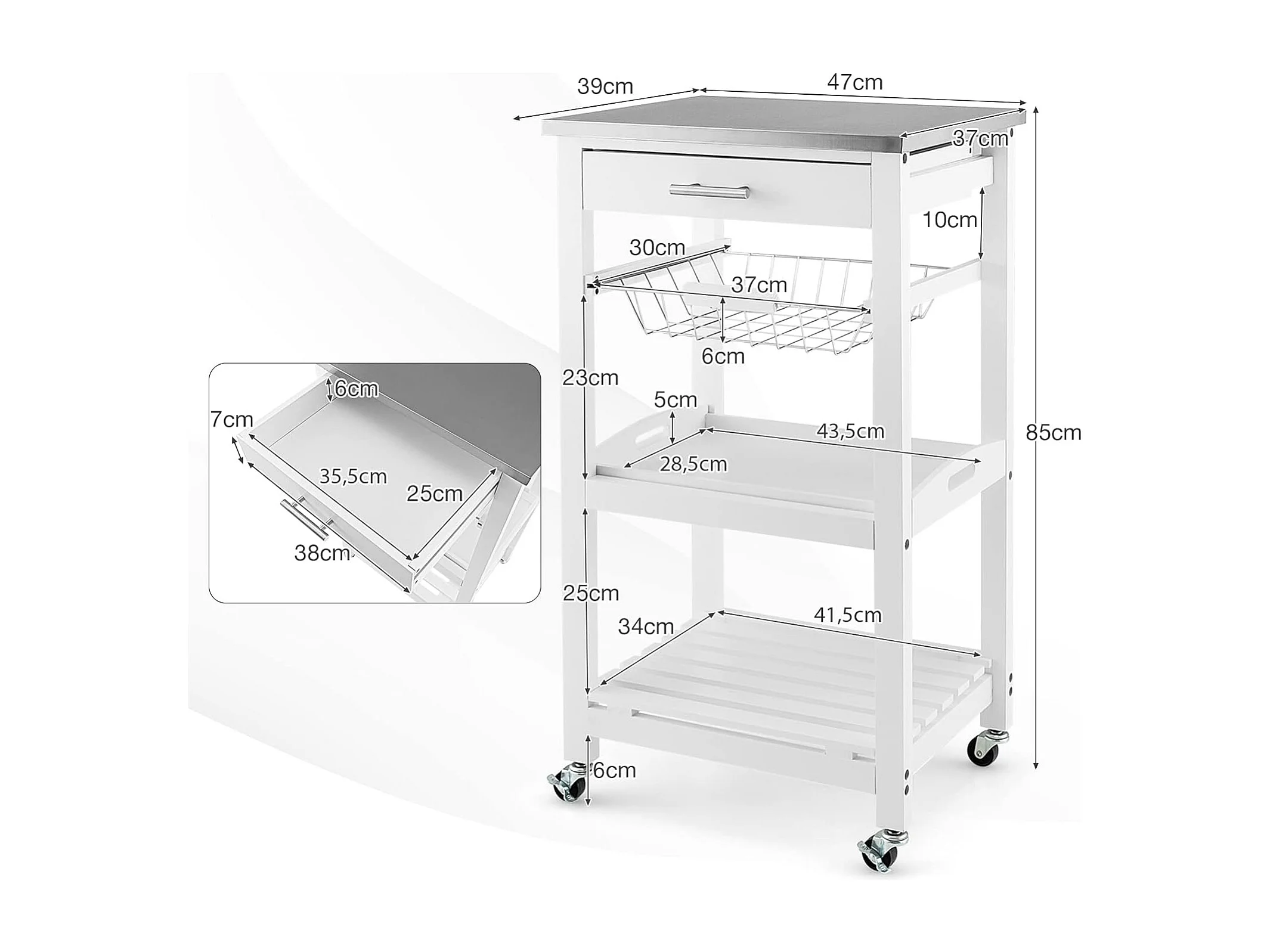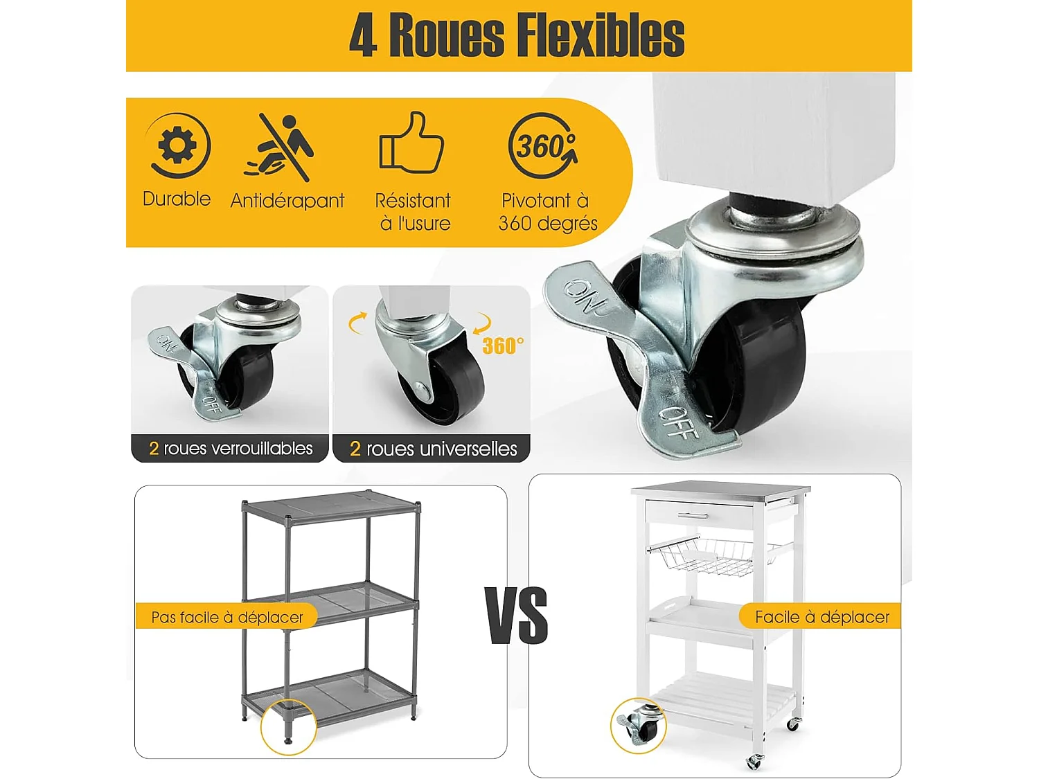 Desserte Cuisine à Roulettes avec Tiroir et Panier en Fil Métallique