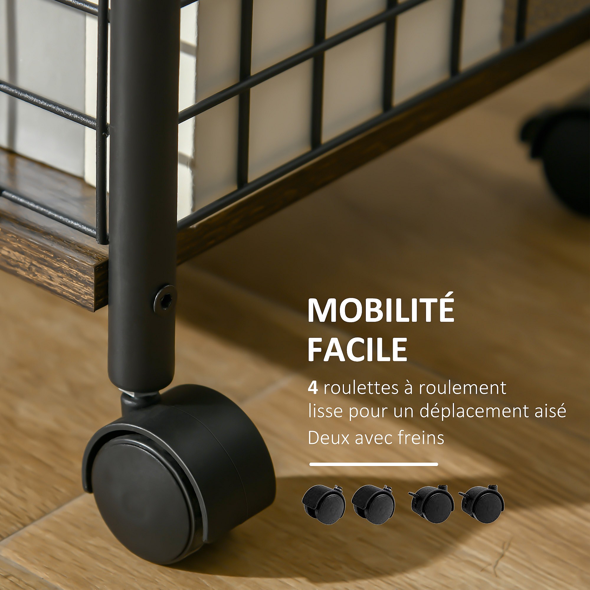 Chariot de cuisine pliable, avec 3 étagères et poignées, en métal, brun et noir (68x35x85 cm)