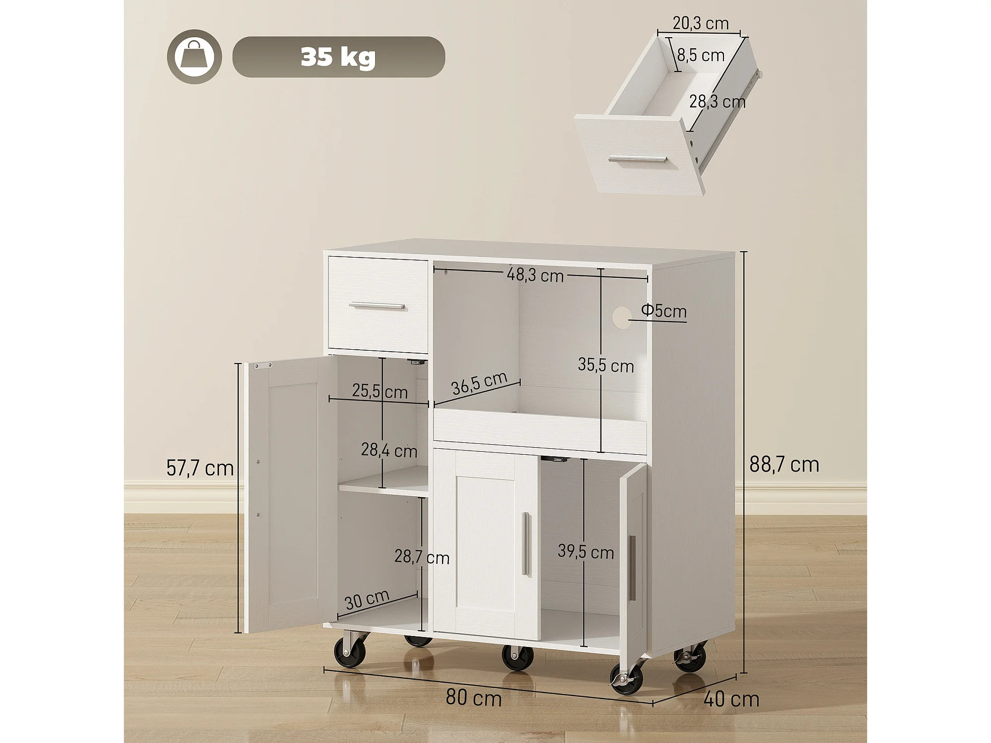 Desserte cuisine mobile - meuble micro-ondes plateau extensible - 3 portes, tiroir, étagère - blanc