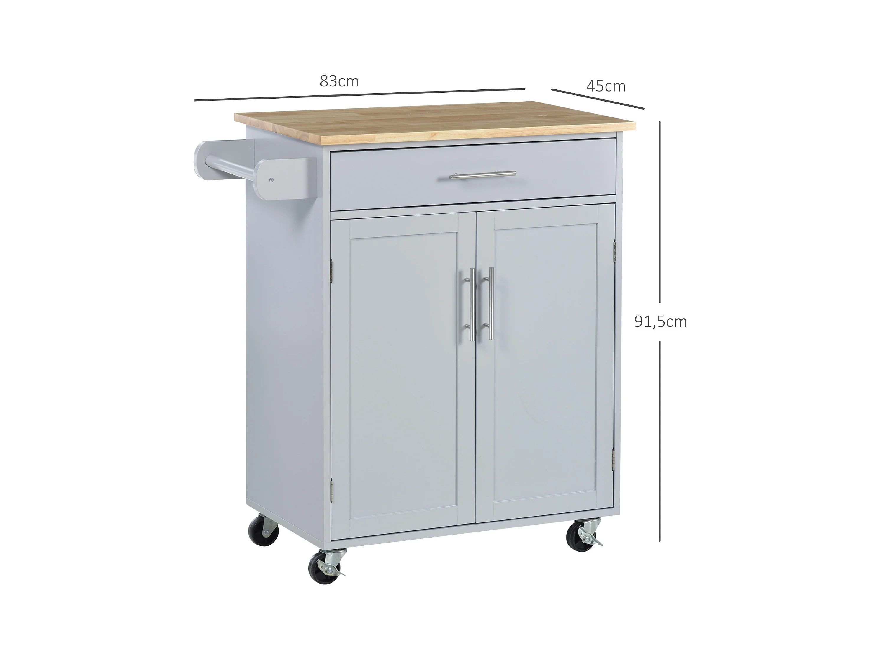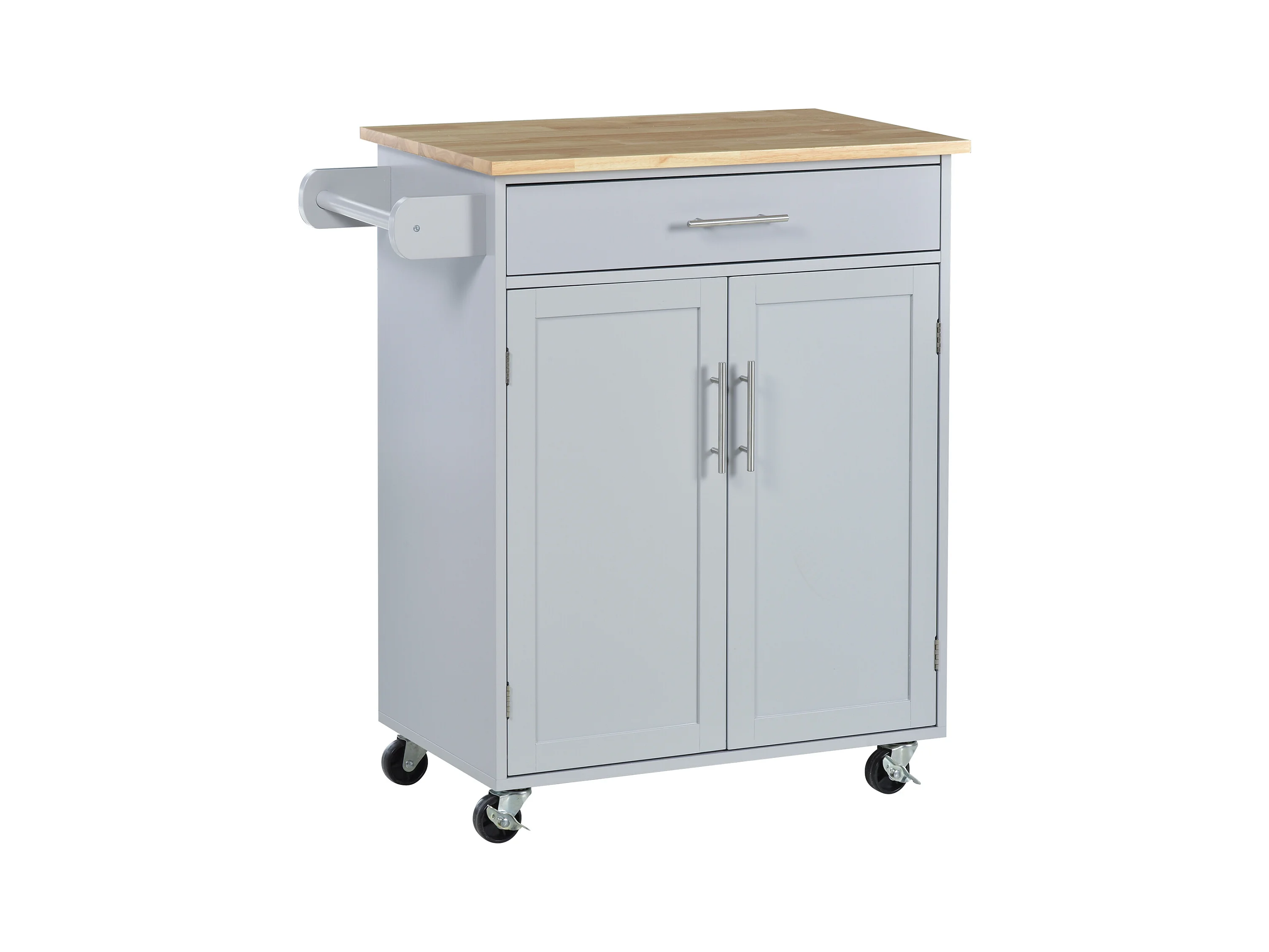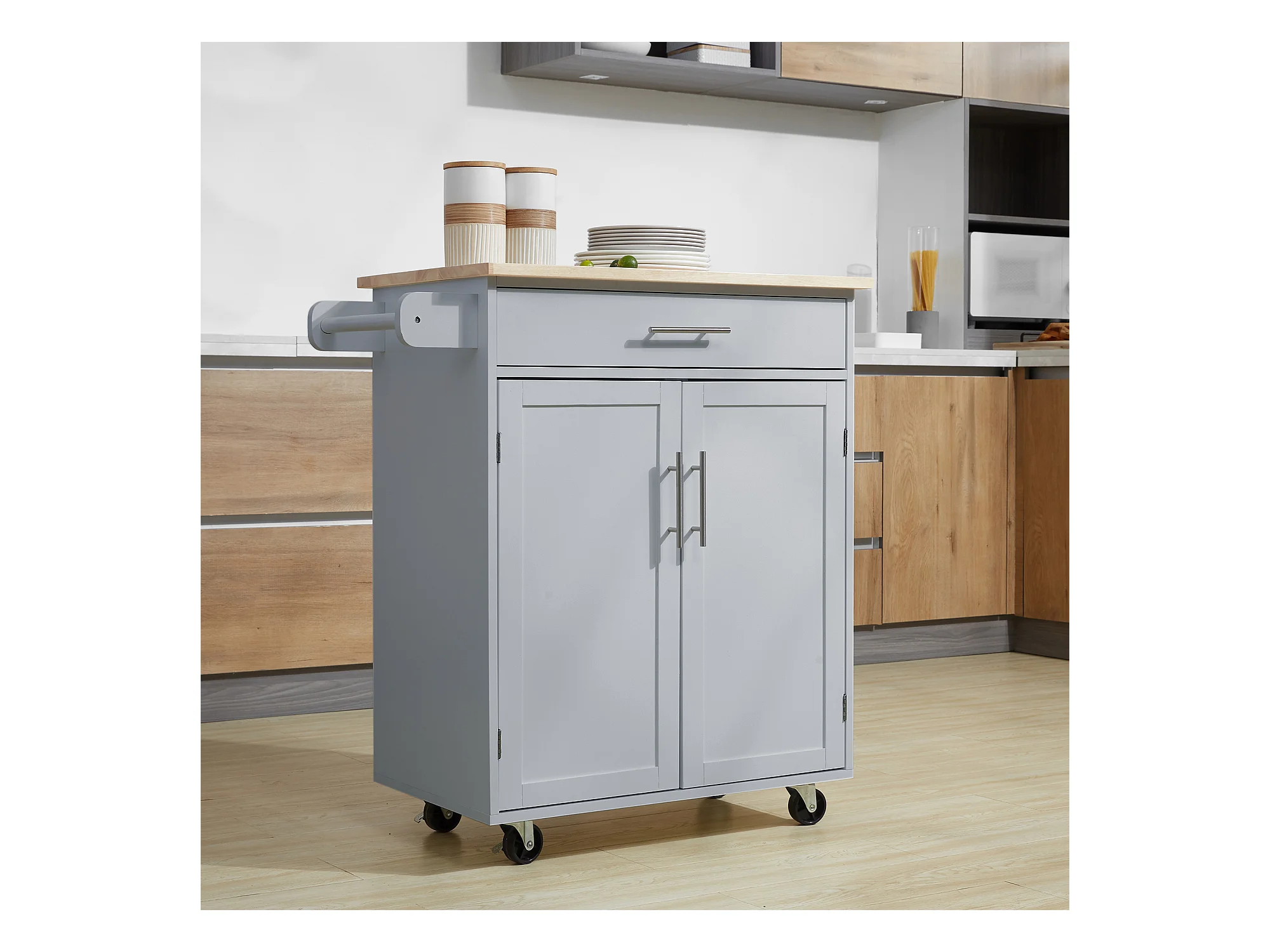 Desserte de cuisine - 2 portes, étagère, tiroir, porte-torchons - bois hévéa pin gris