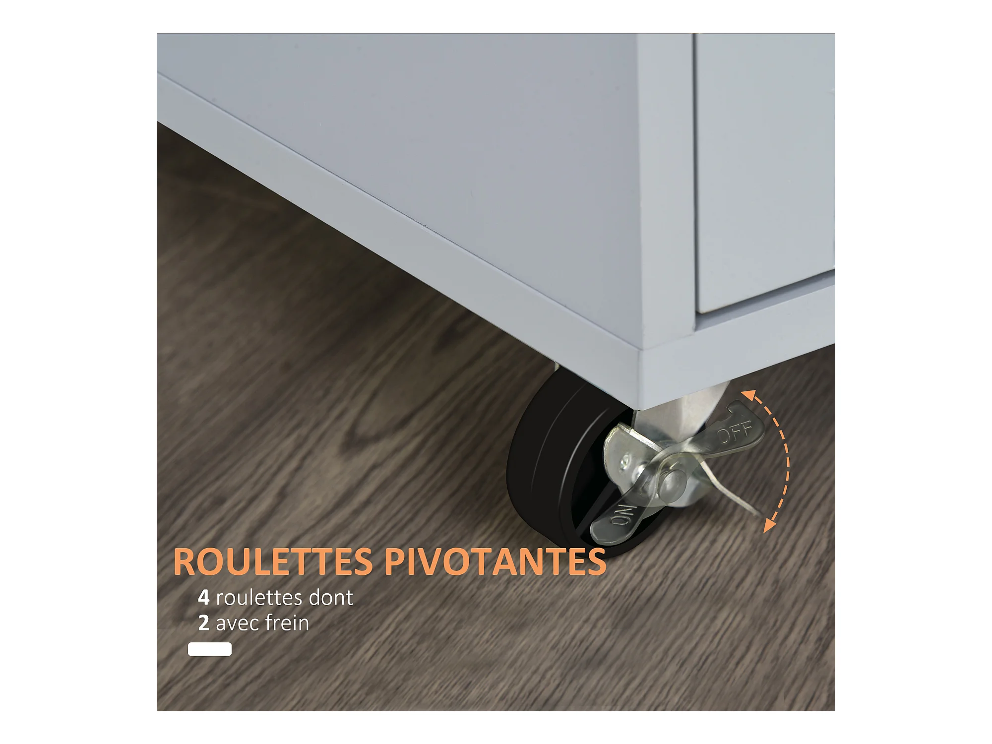 Desserte roulante 3 niveaux Gris Galet H 75 cm idéale pour les petits espaces