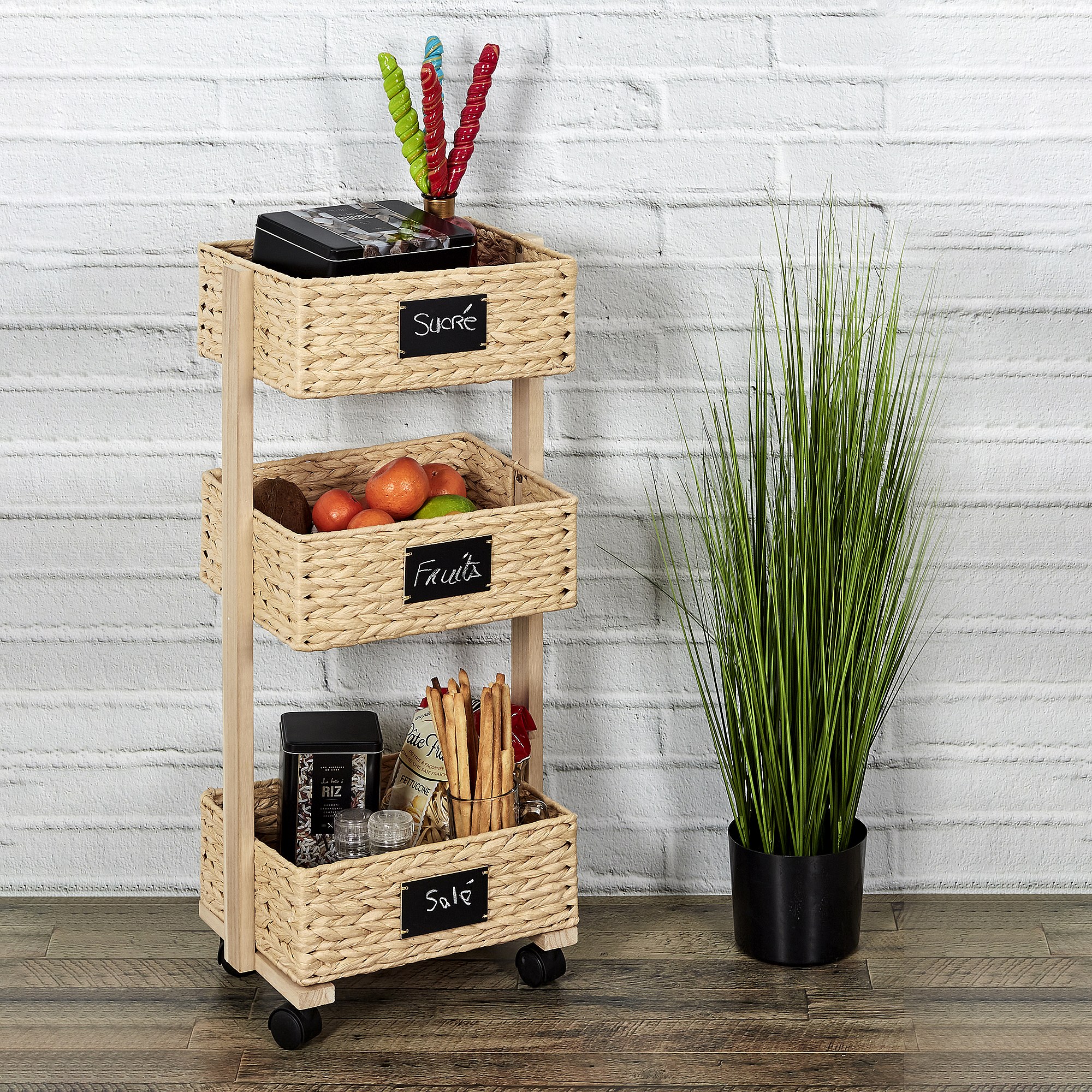 Desserte A Roulettes 3 Paniers Tresses Beige