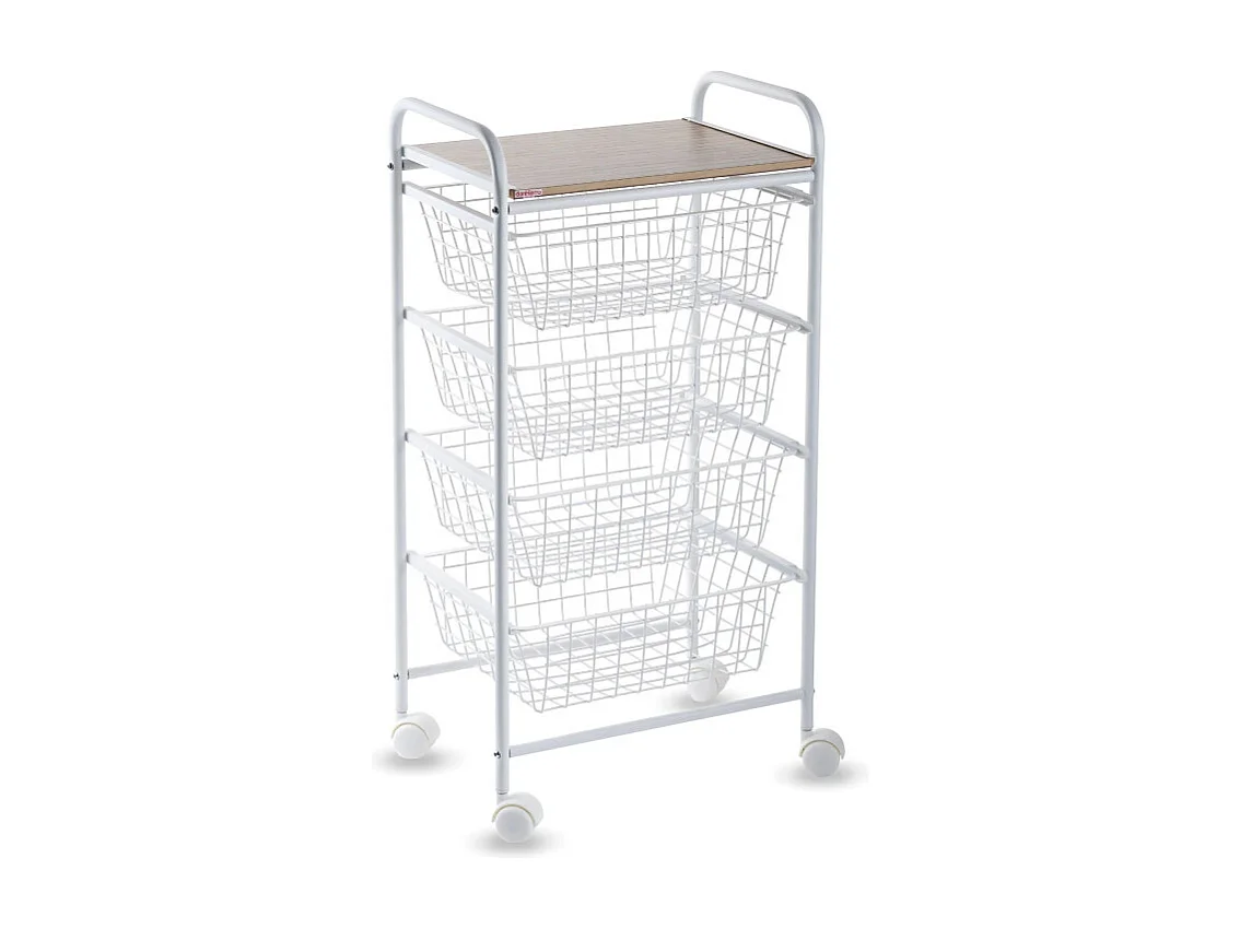 KALIO - Desserte sur roulettes en Métal imitation bois et Plateaux en Plastique Blancs