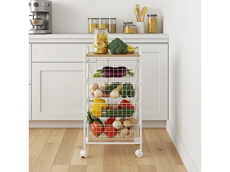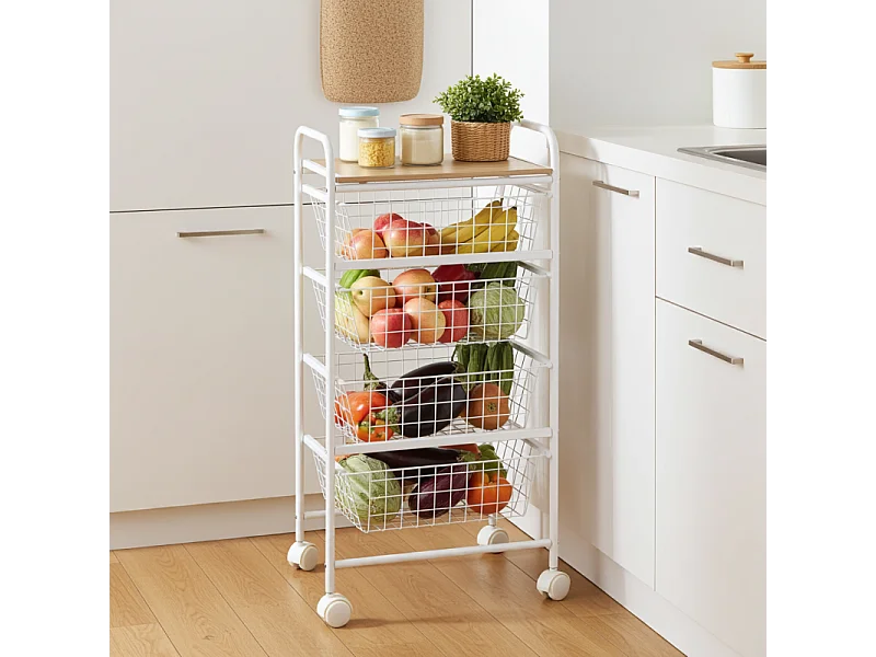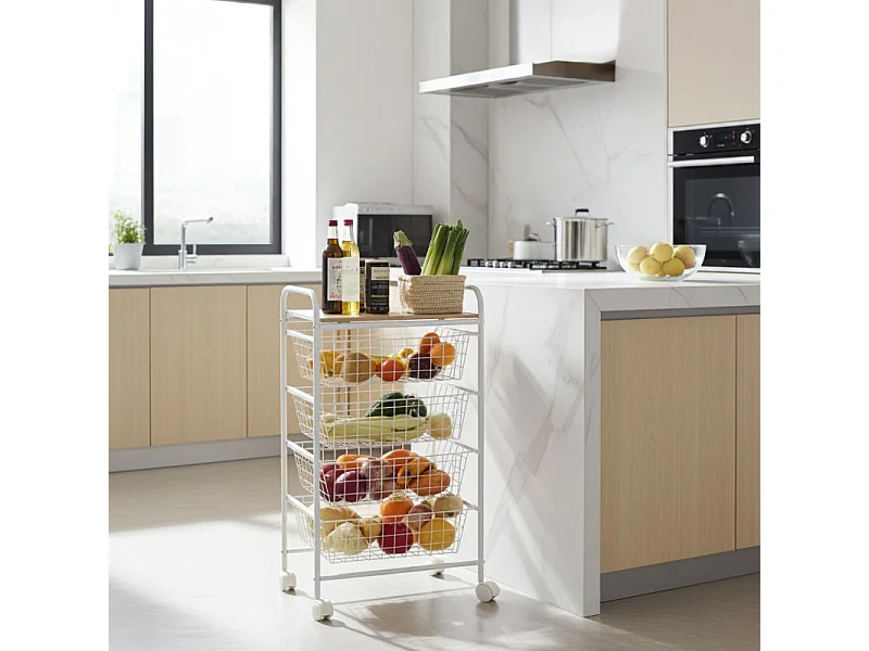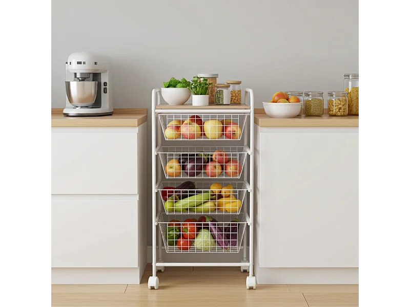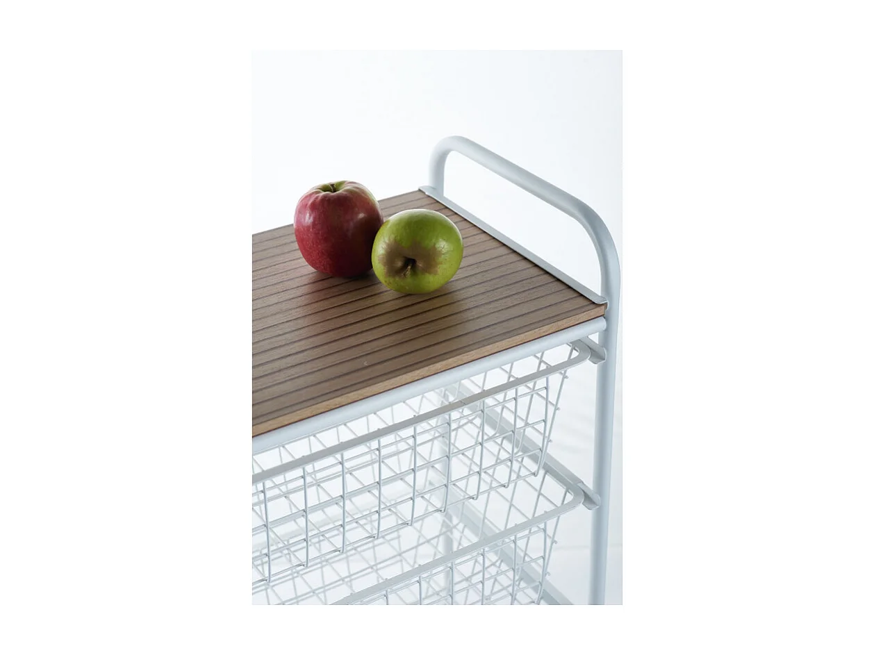 Rodin M Chariot de cuisine moderne fruits légumes 3 paniers pivotants - Blanc