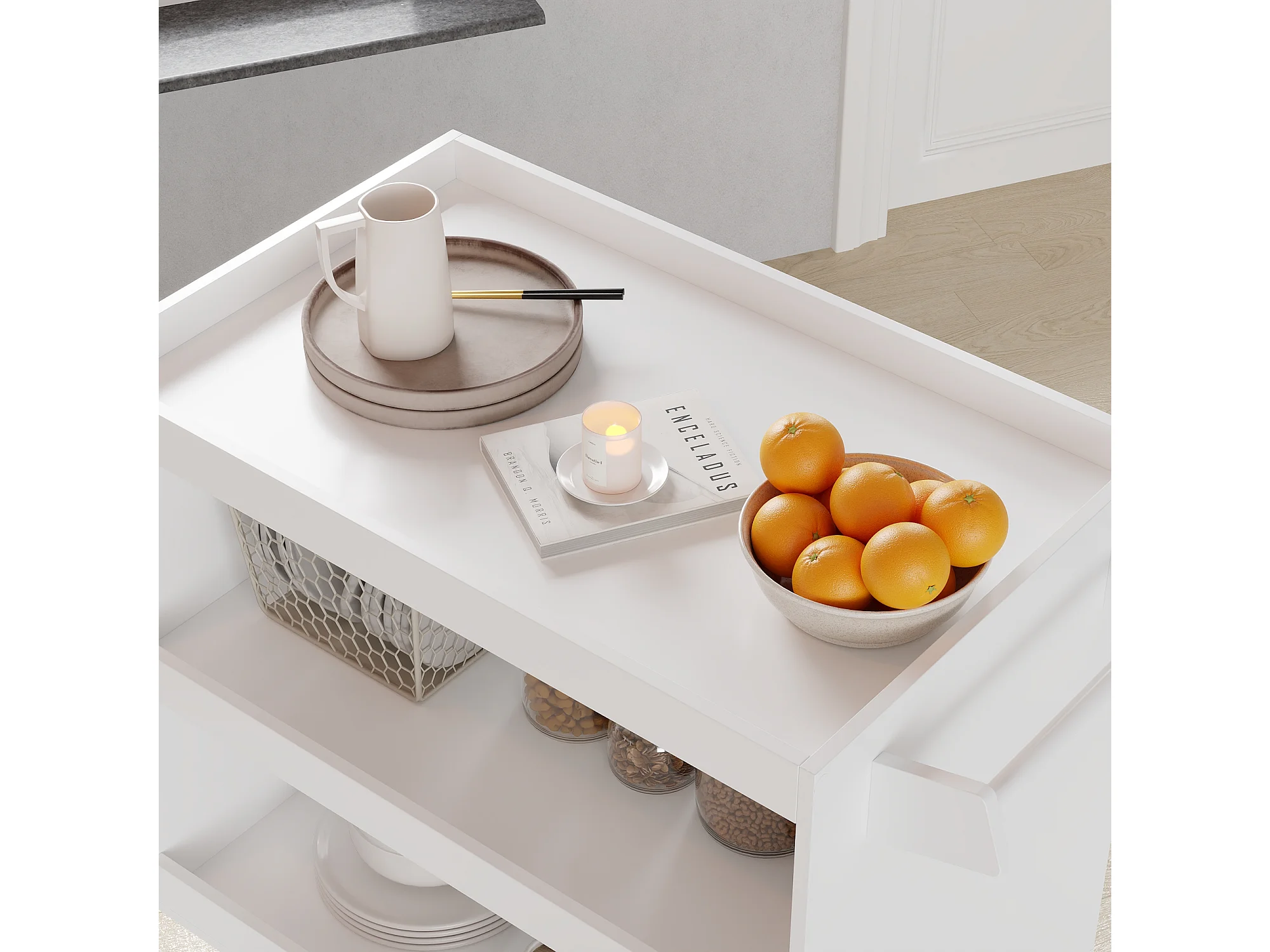 Desserte de cuisine mobile avec plan de travail, étagère réglable, MDF blanc (109x40x89cm)